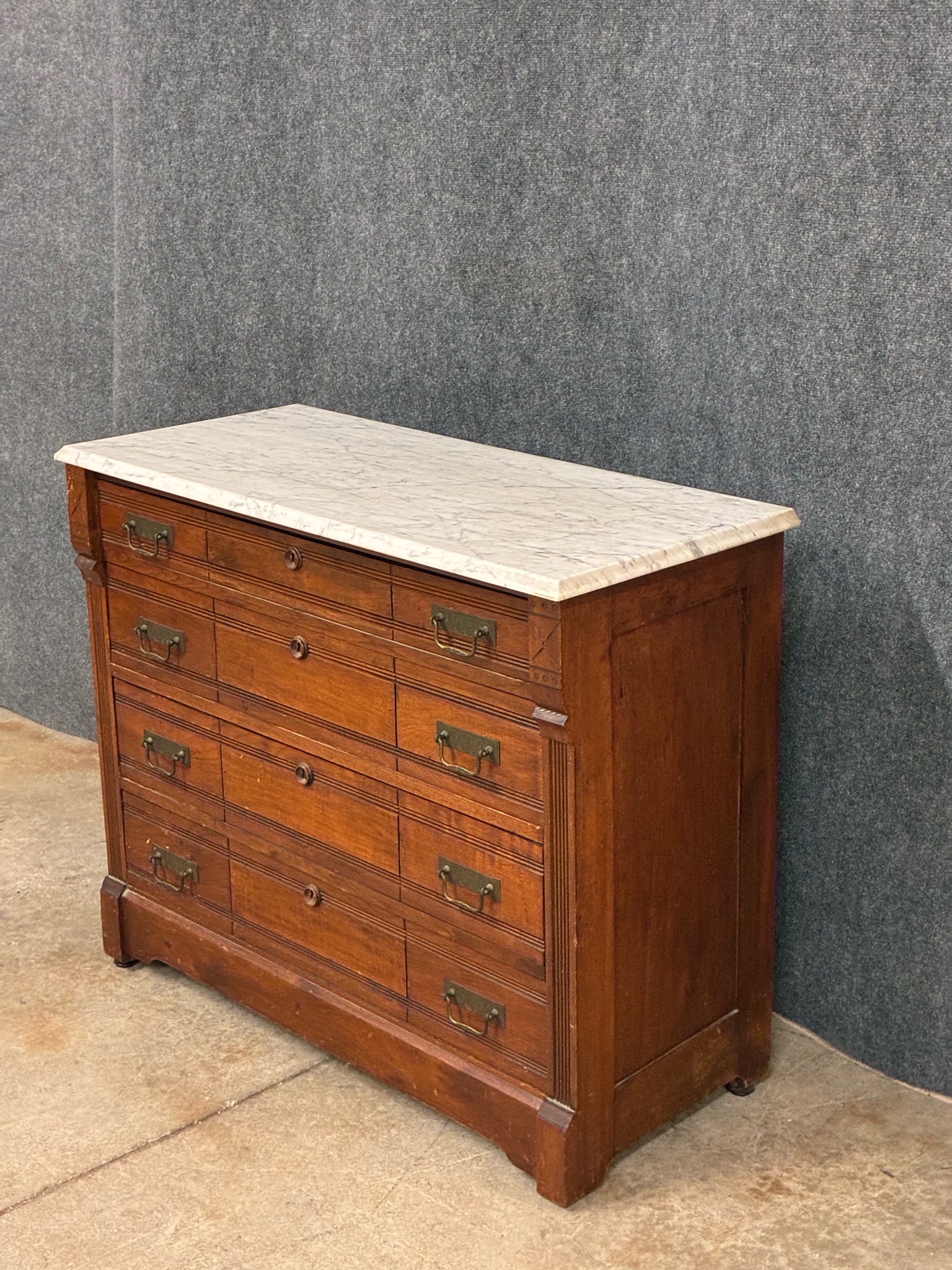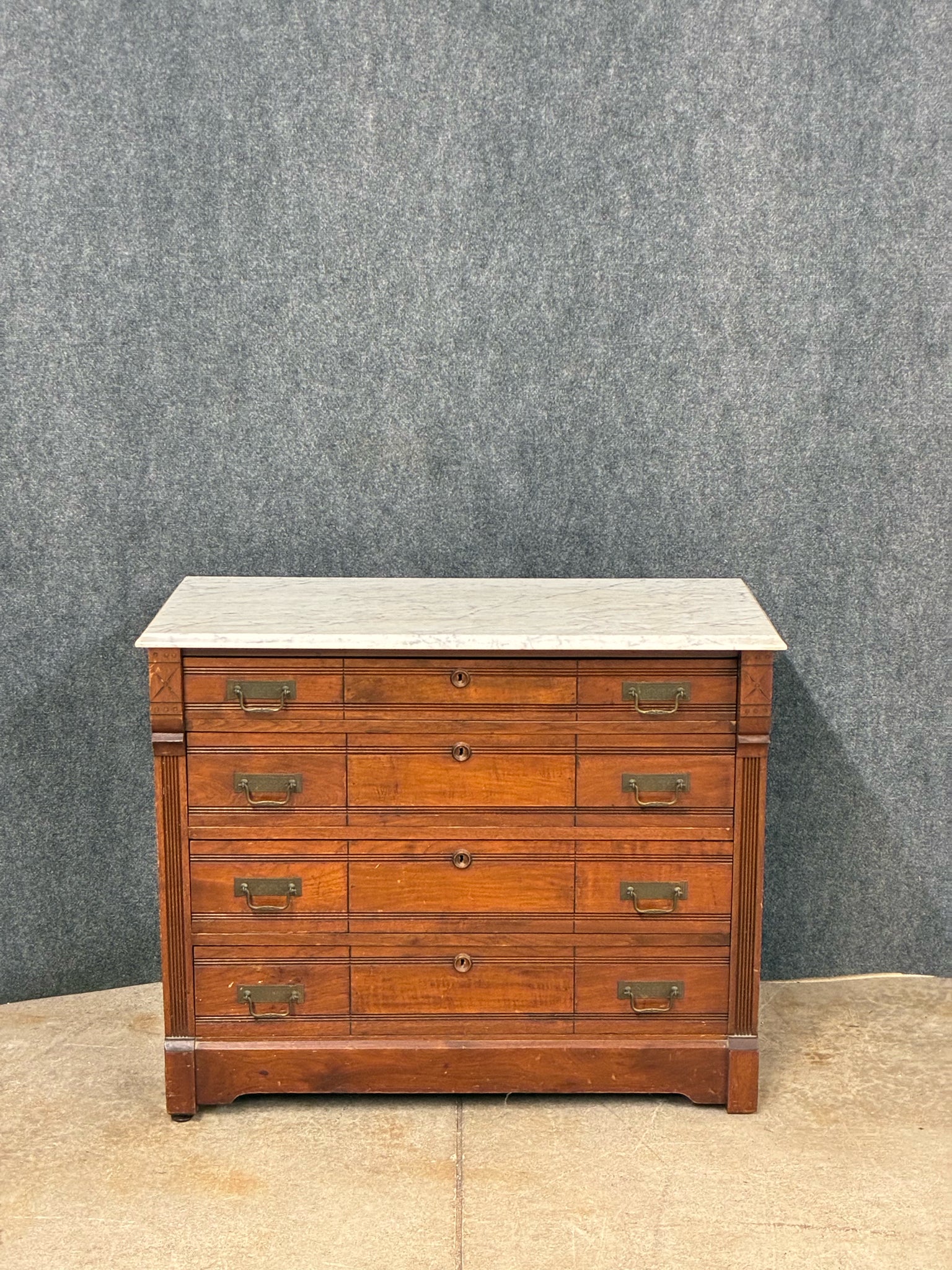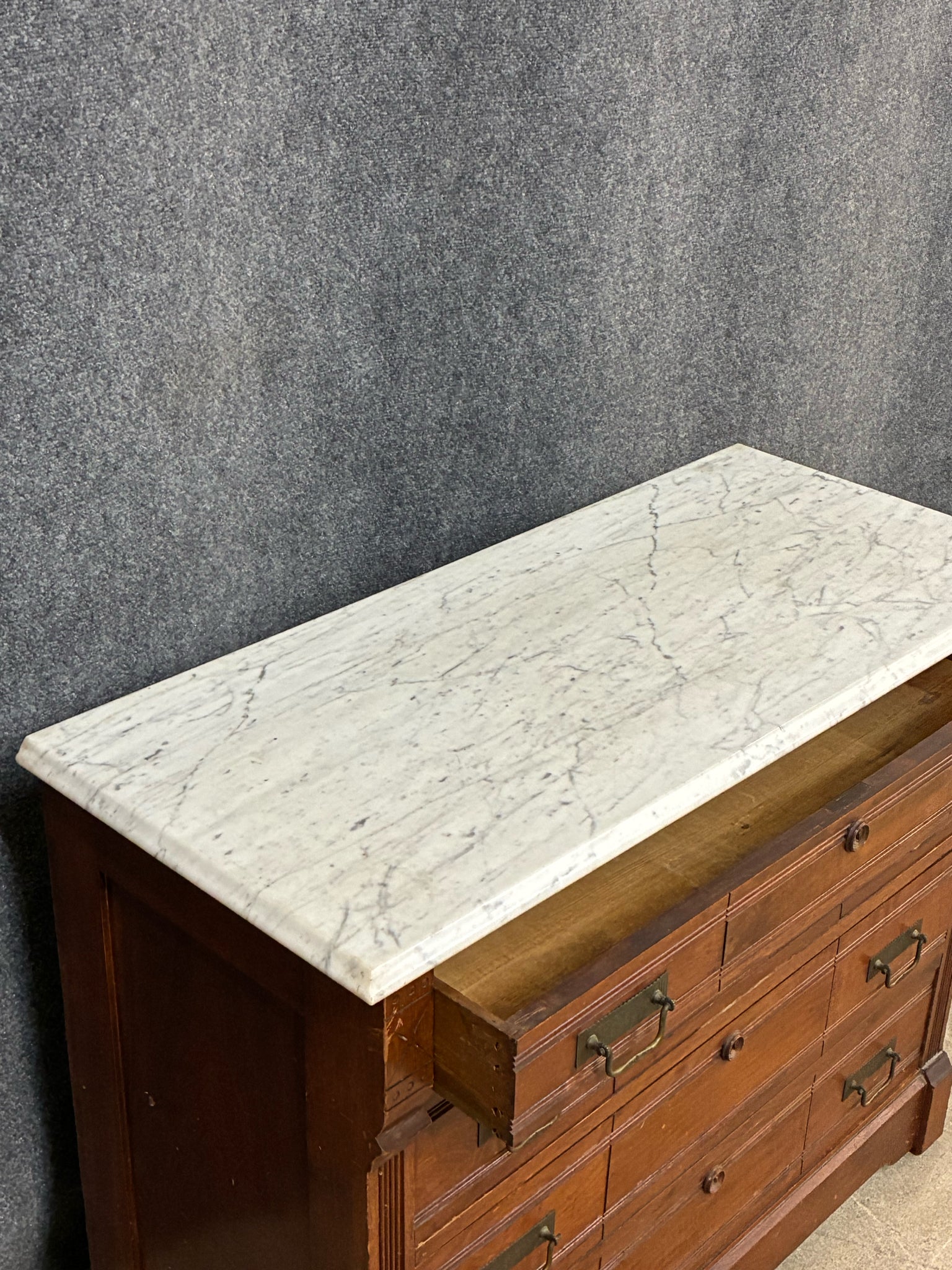 Antique Marble-Top Low Chest. Dimensions: 40"W 18"D 33"H