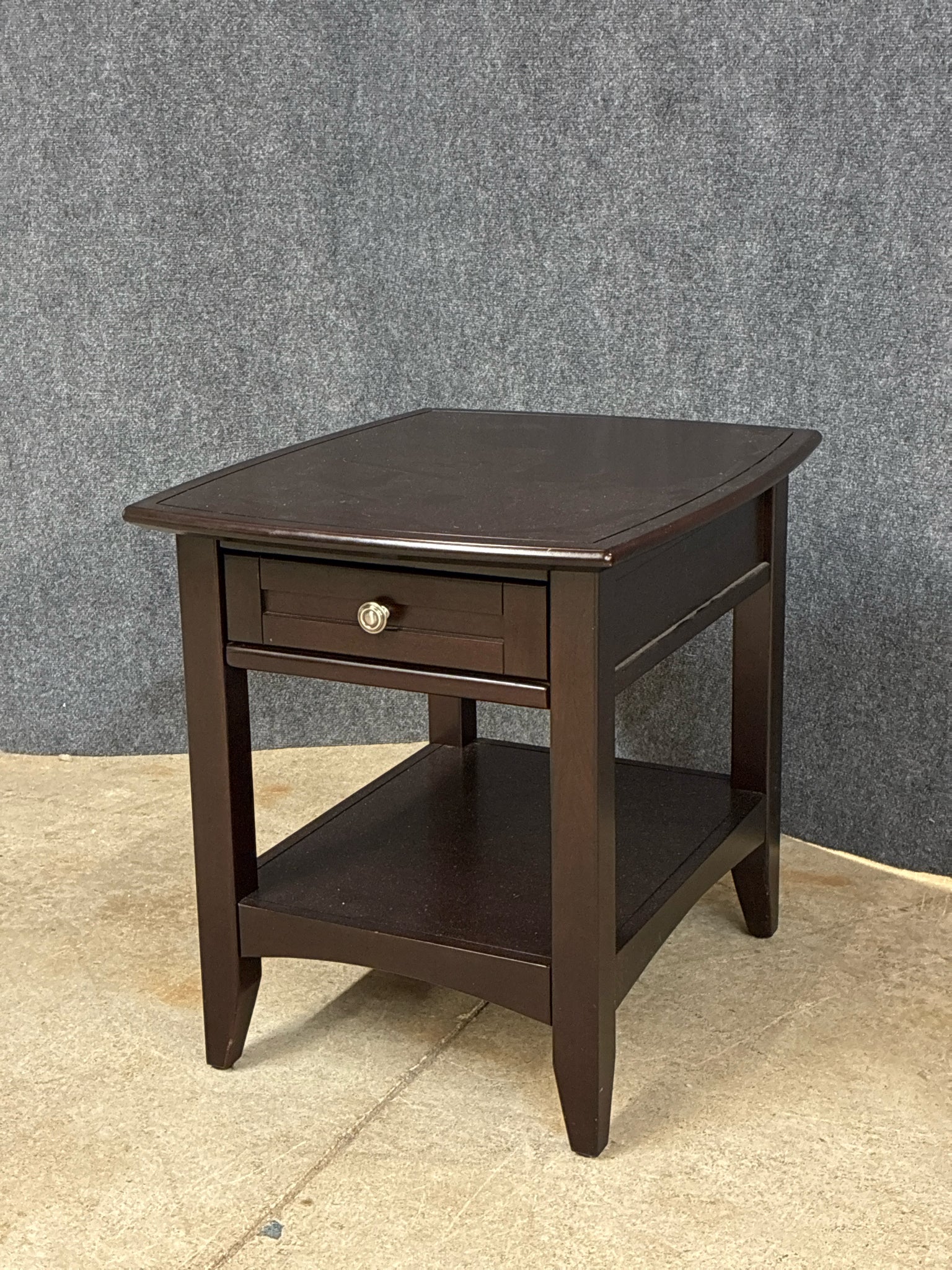 Aspenhome Espresso One-Drawer End Table. Dimensions: 23"W 28"D 25"H