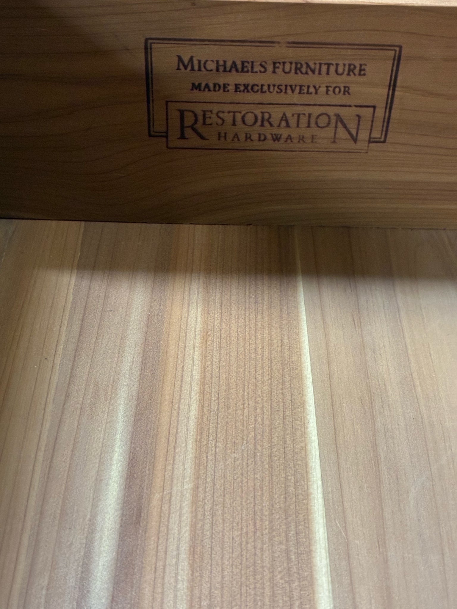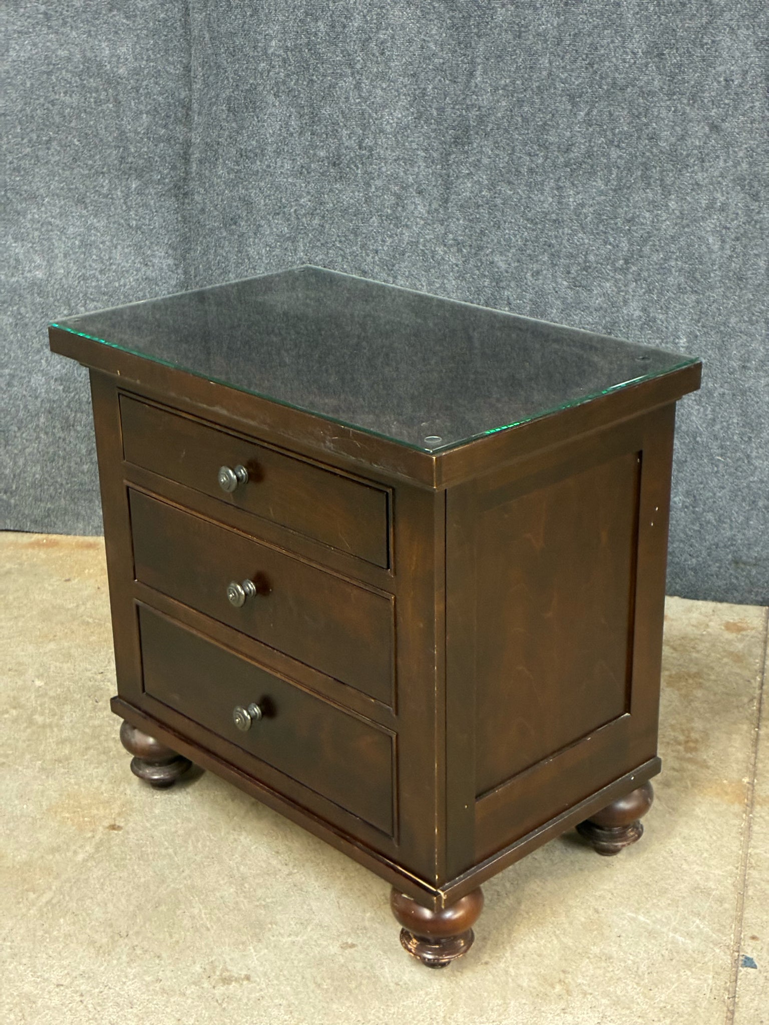 Restoration Hardware "Camden" 3-Drawer Nightstand with Glass Top, Cedar Lined Drawers. Dimensions: 31"W 20"D 31"H