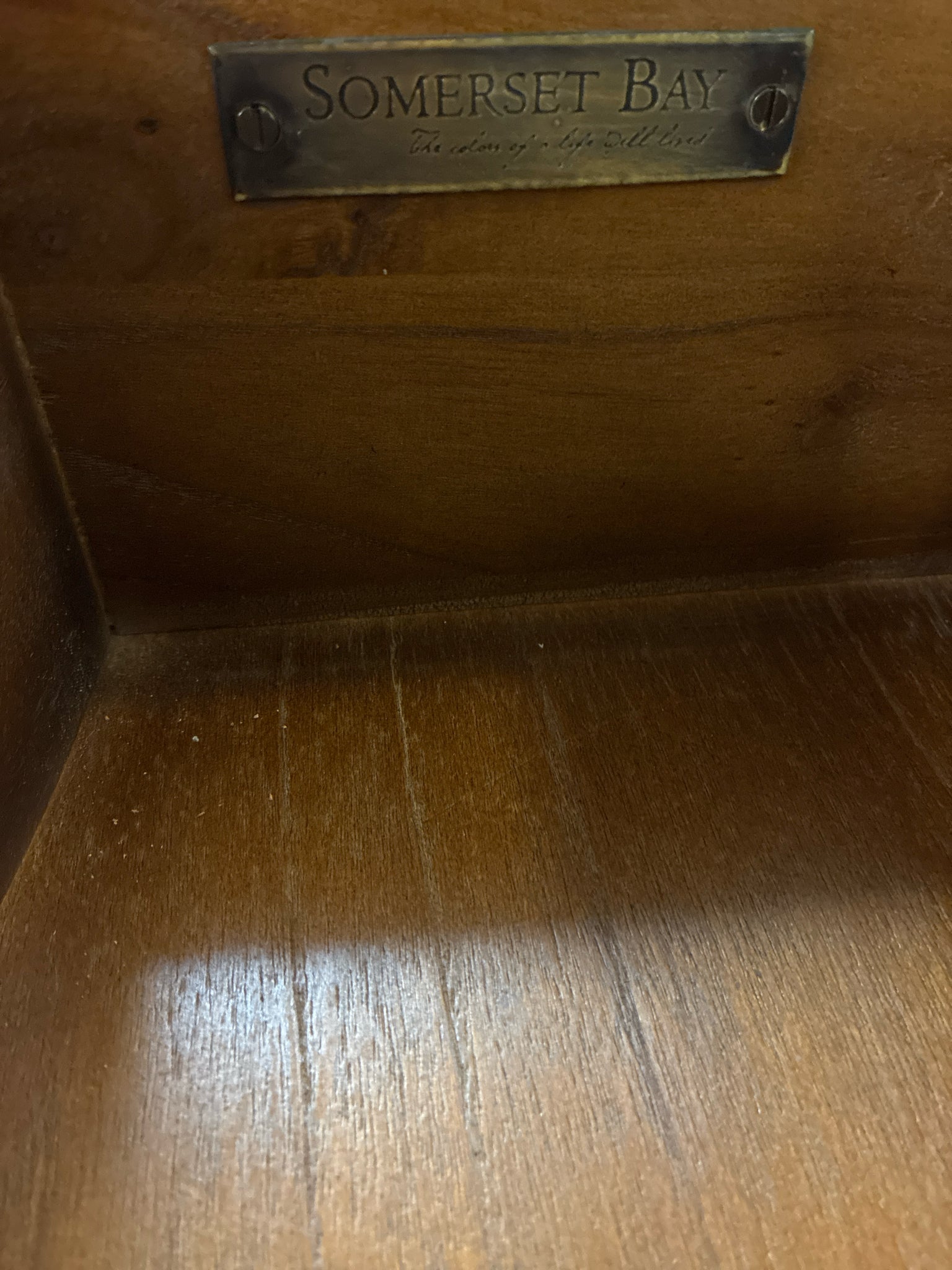 Somerset Bay 3 Drawer Chest With Glass Top. Dimensions: 26.5" Long x 17" Deep x 33.5" High