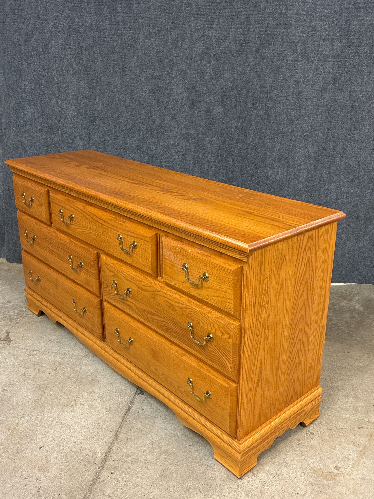 Traditional Oak 7-Drawer Dresser. Dimensions: 60"W 18"D 30"H