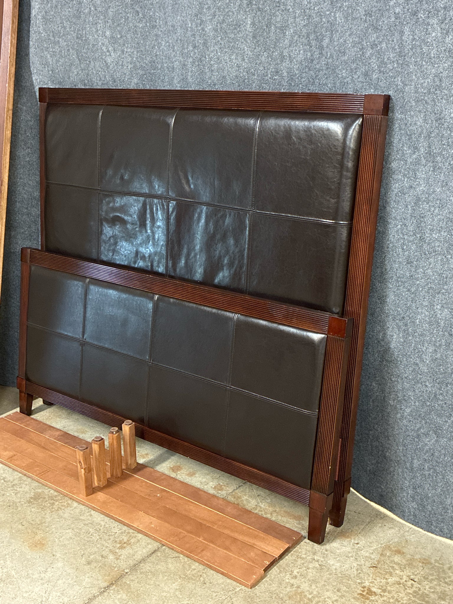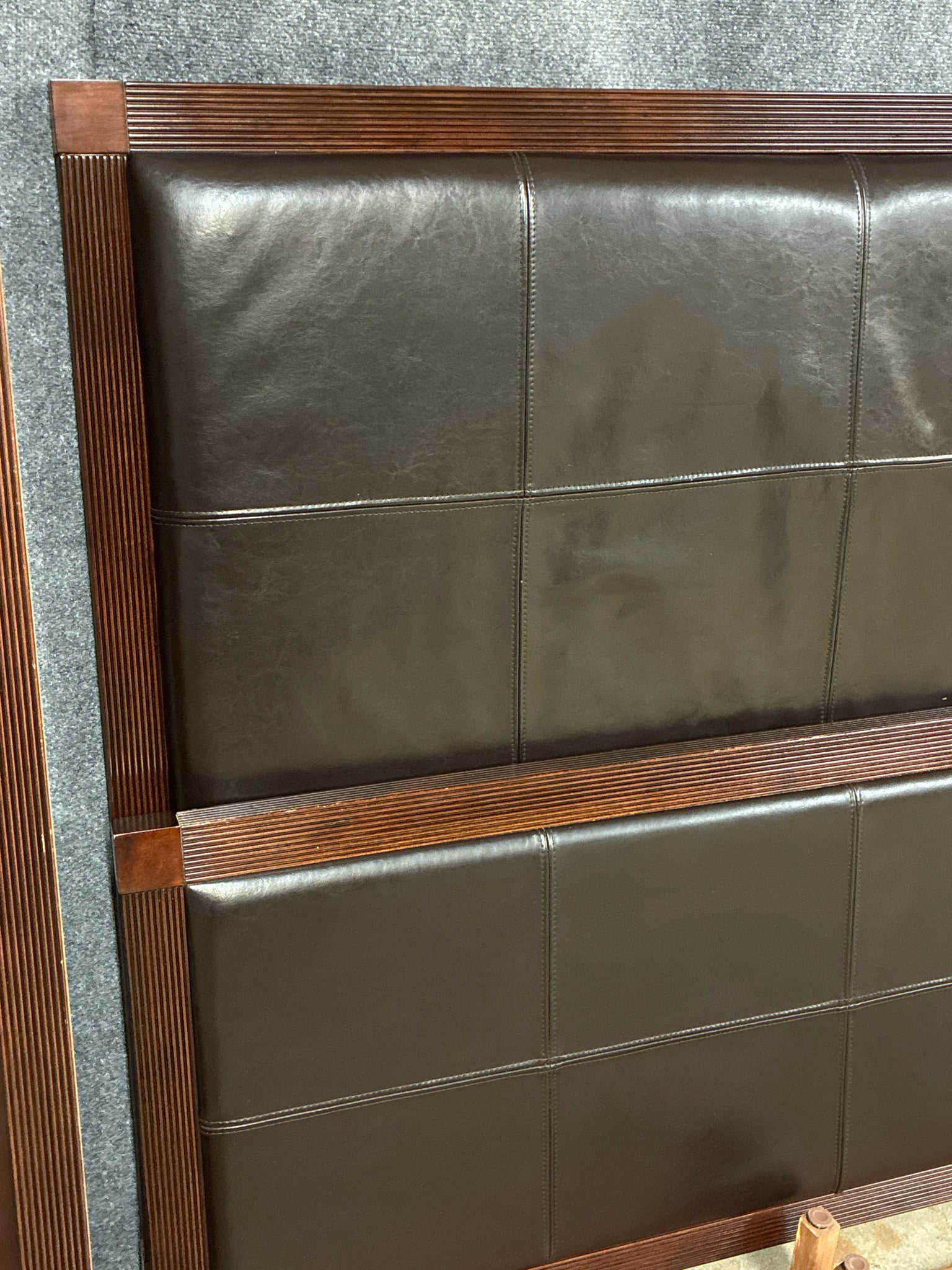 Transitional Queen Bed Frame with Faux Leather Upholstered Panels