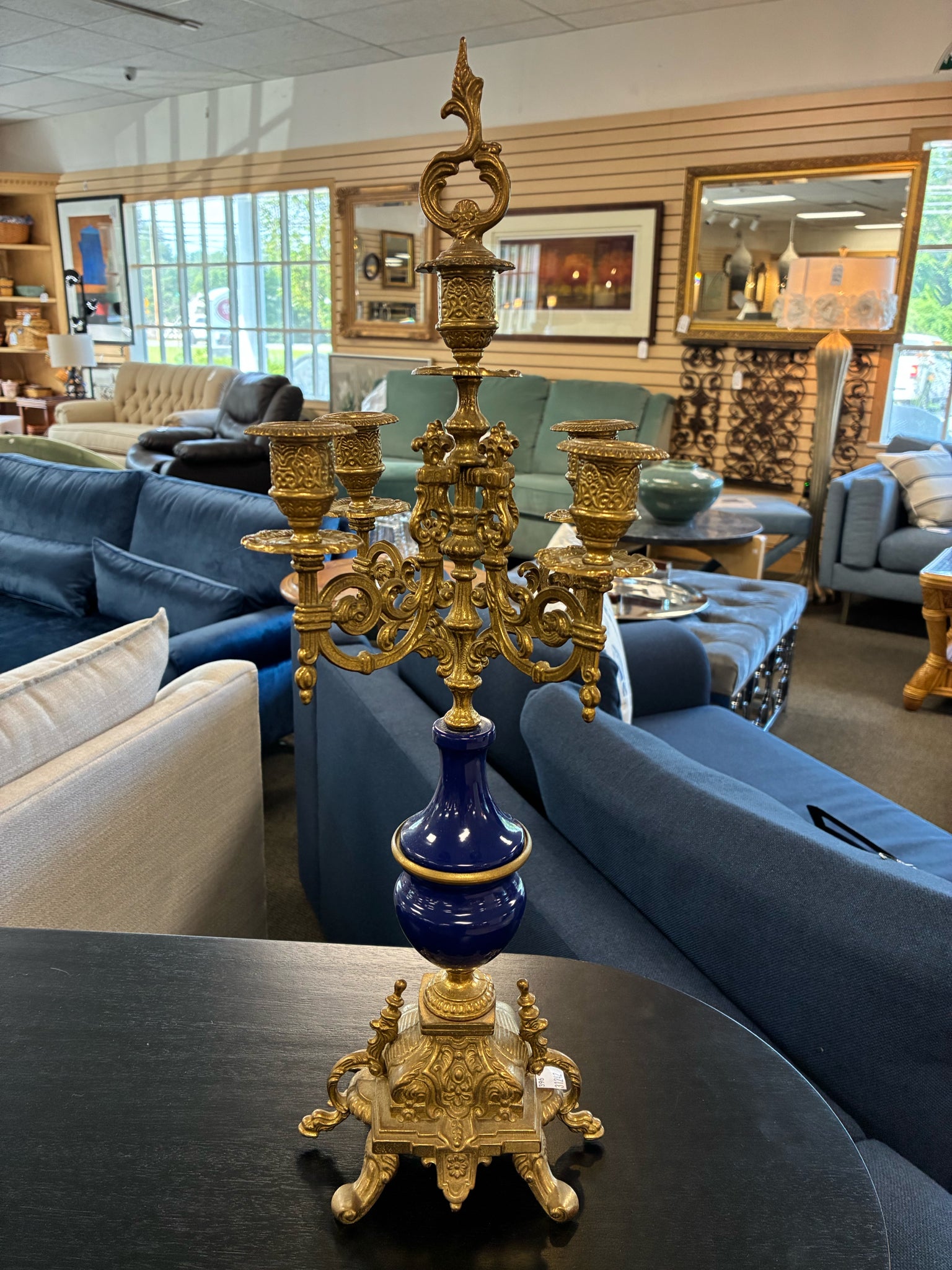 PAIR of Italian brass cobalt blue 4 arm 5 taper candelabras (includes 2 caps)