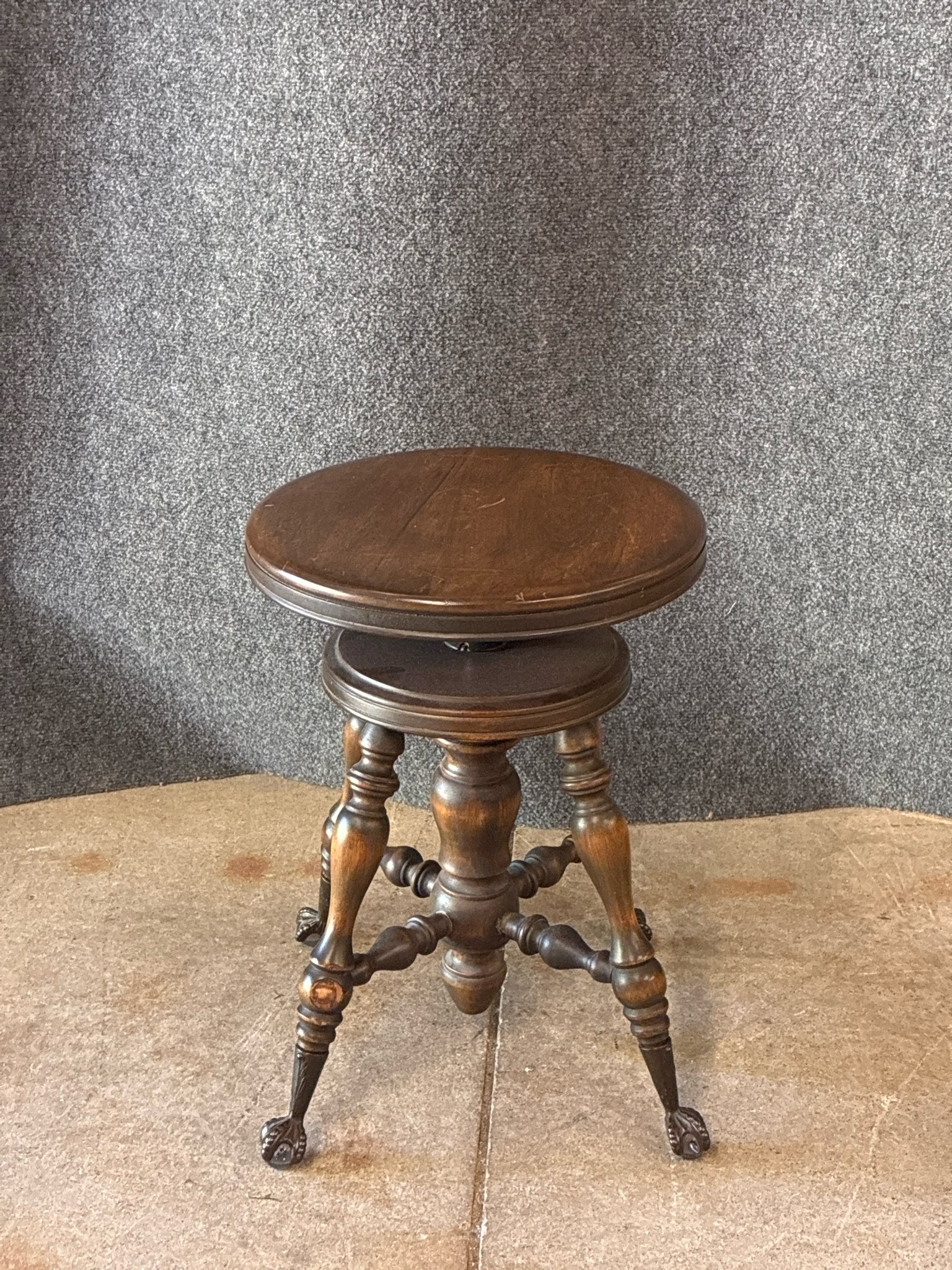 Antique Adjustable Swivel Piano Stool with Claw & Ball Feet