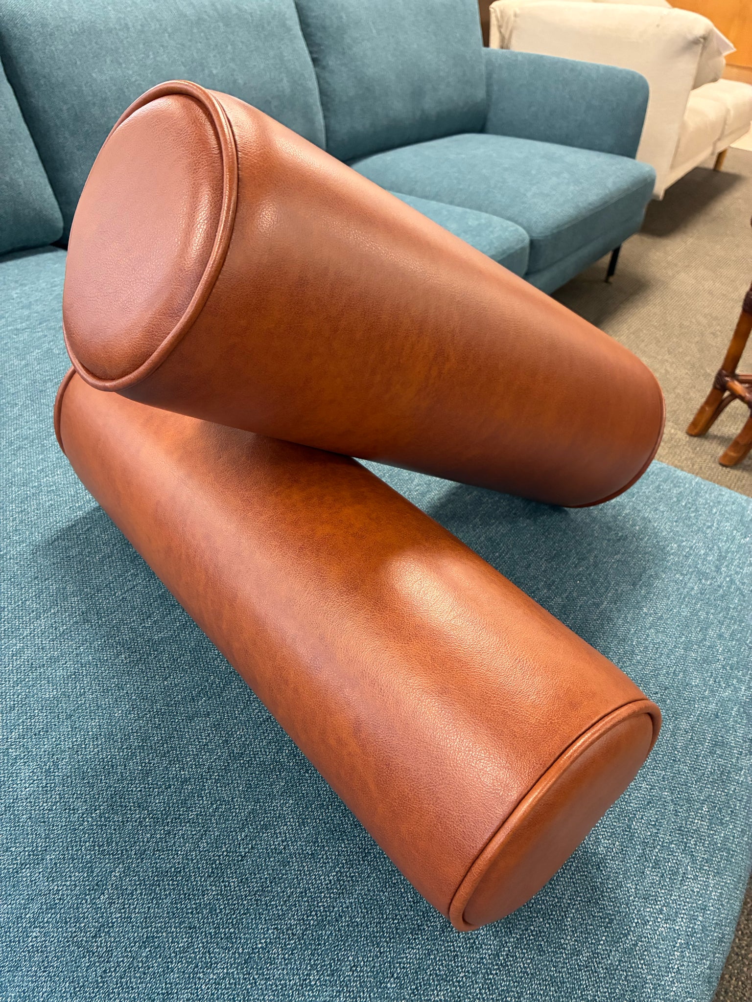 *NEW* Burrow SET OF 2 The Nomad Leather Bolster Pillow in Chesnut