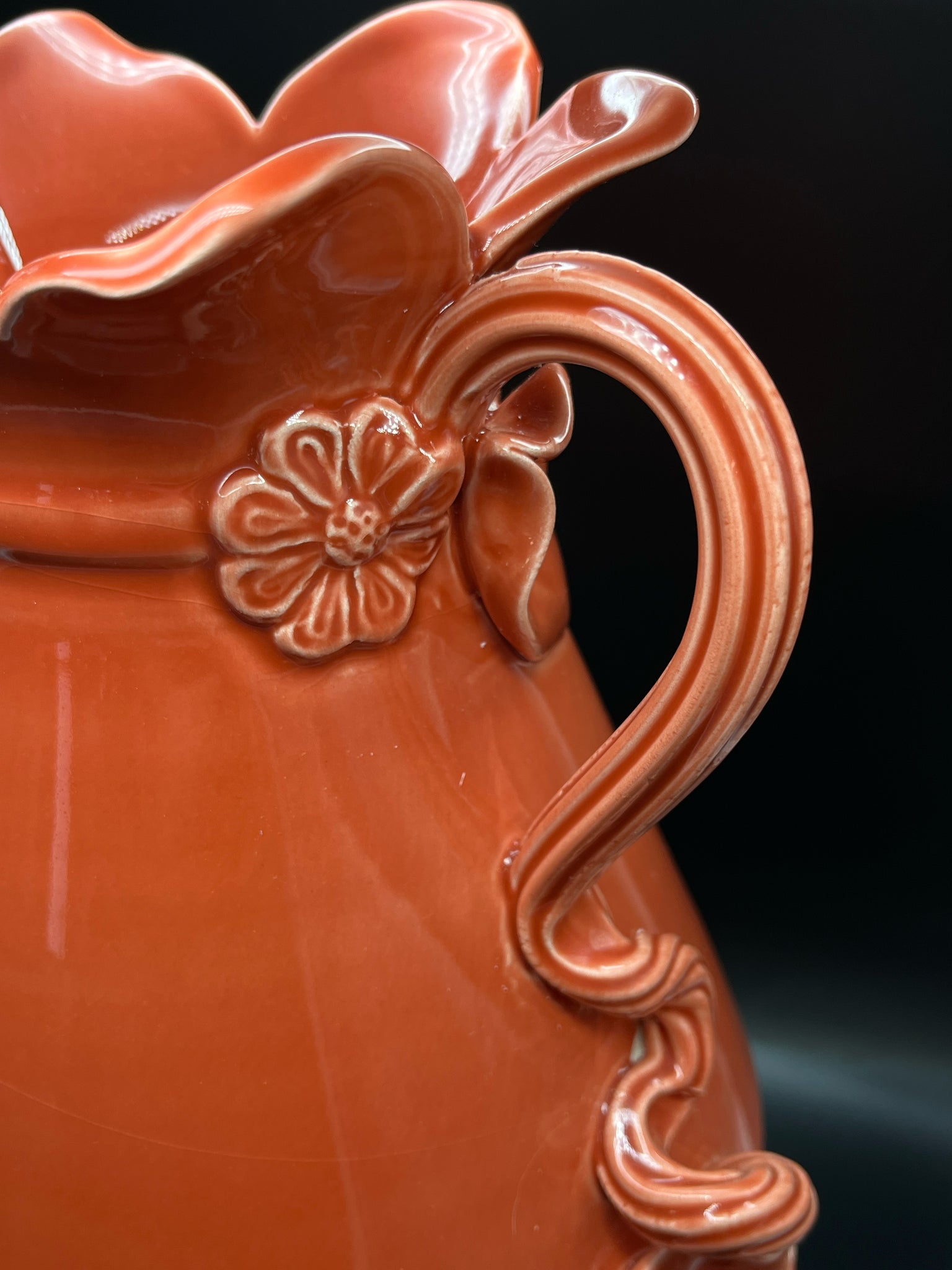 Vietri Tuscan Garden Coral vase, 13.75" urn style with raised leaves