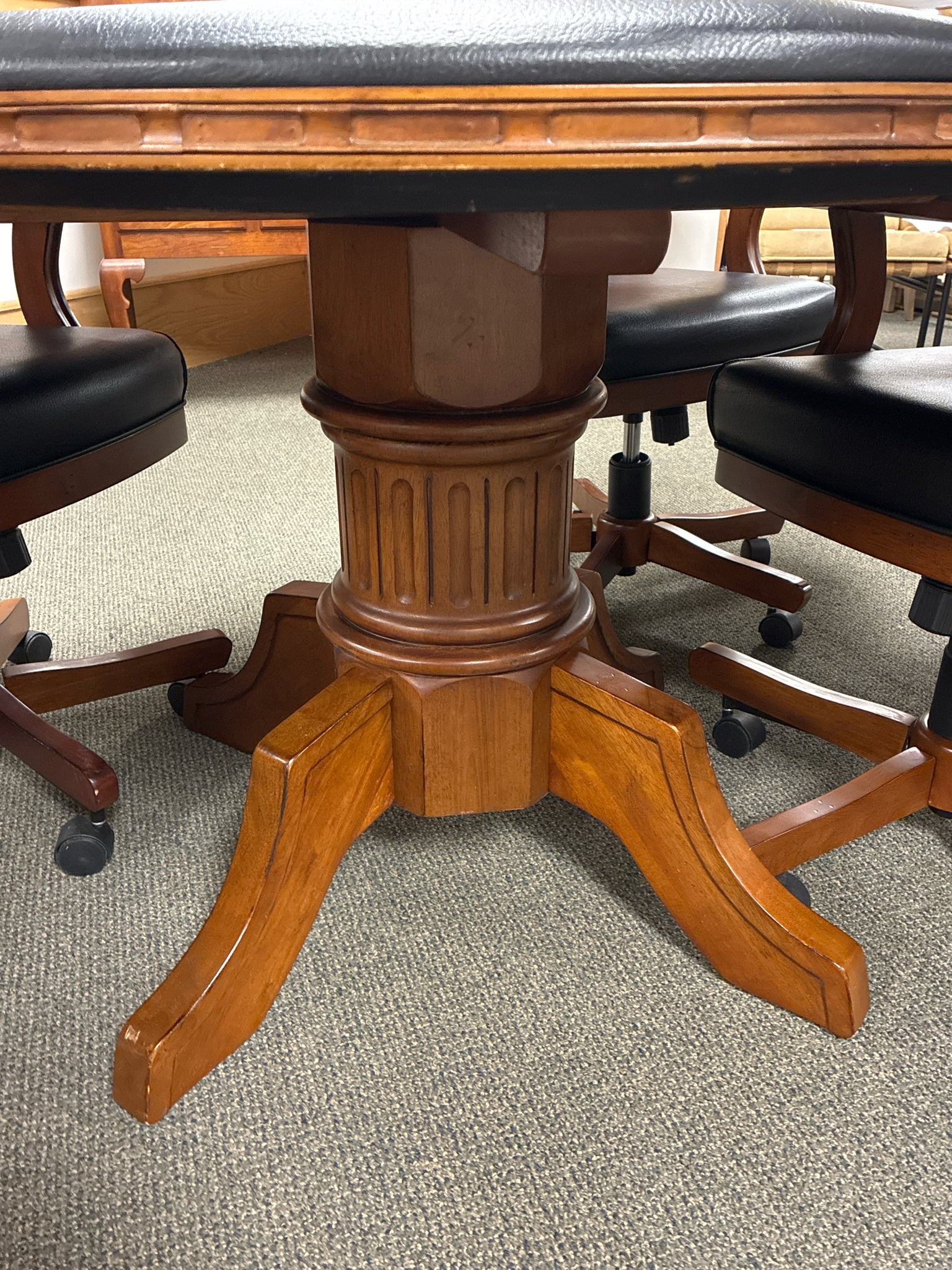 American Billiards Poker Table With 4 Leather Rolling Chairs. Dimensions: 55"D 31"H