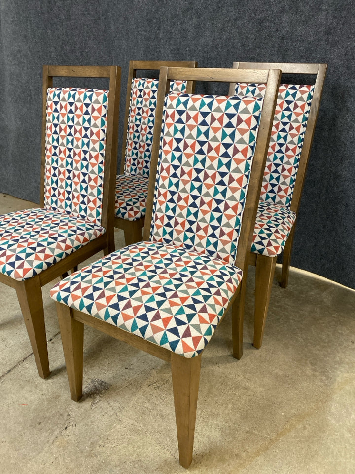 Set of 4 Canadel Dining Chairs, Multi-color Upholstery. Dimensions: 20"W 23"D 41"H