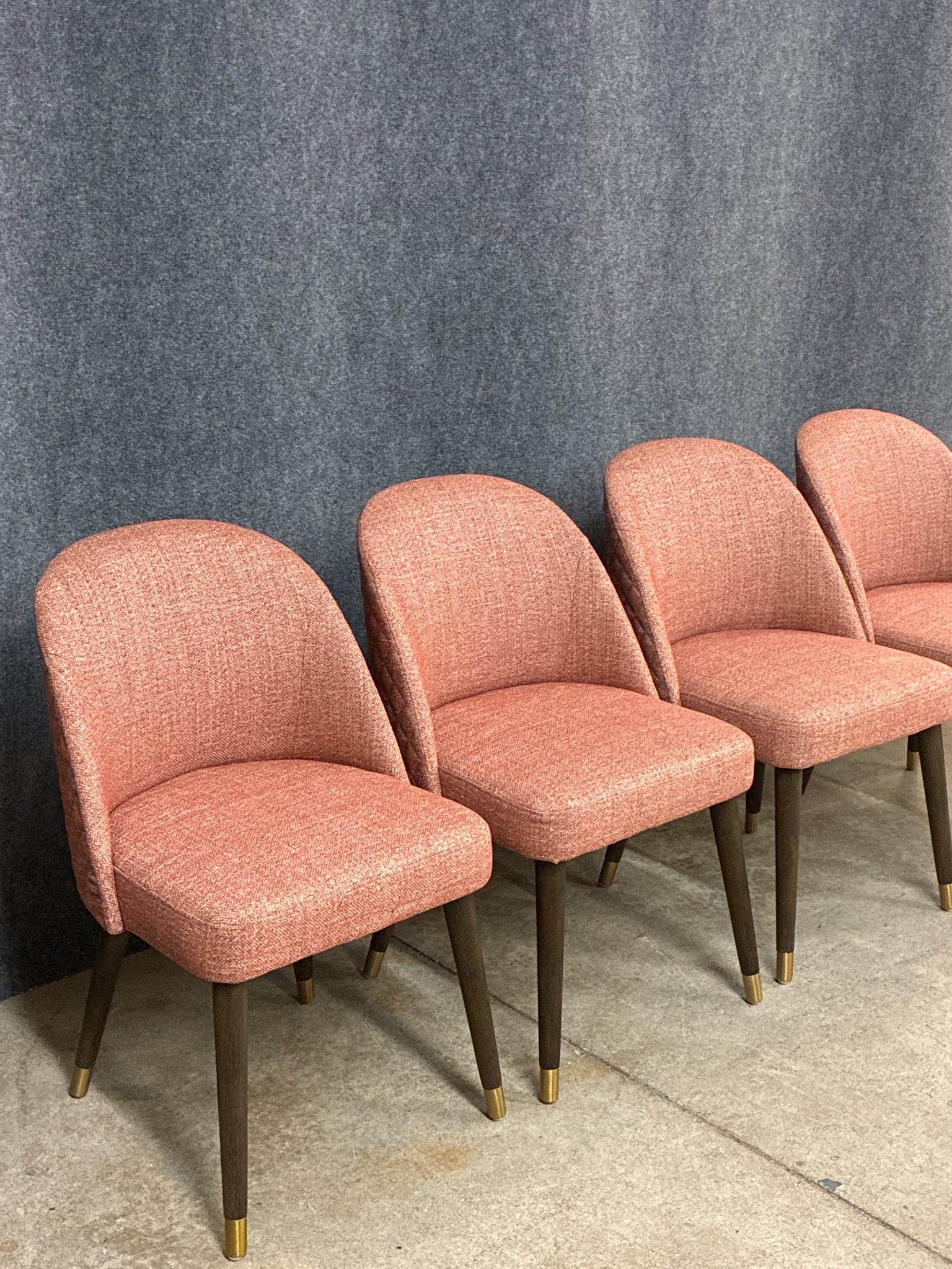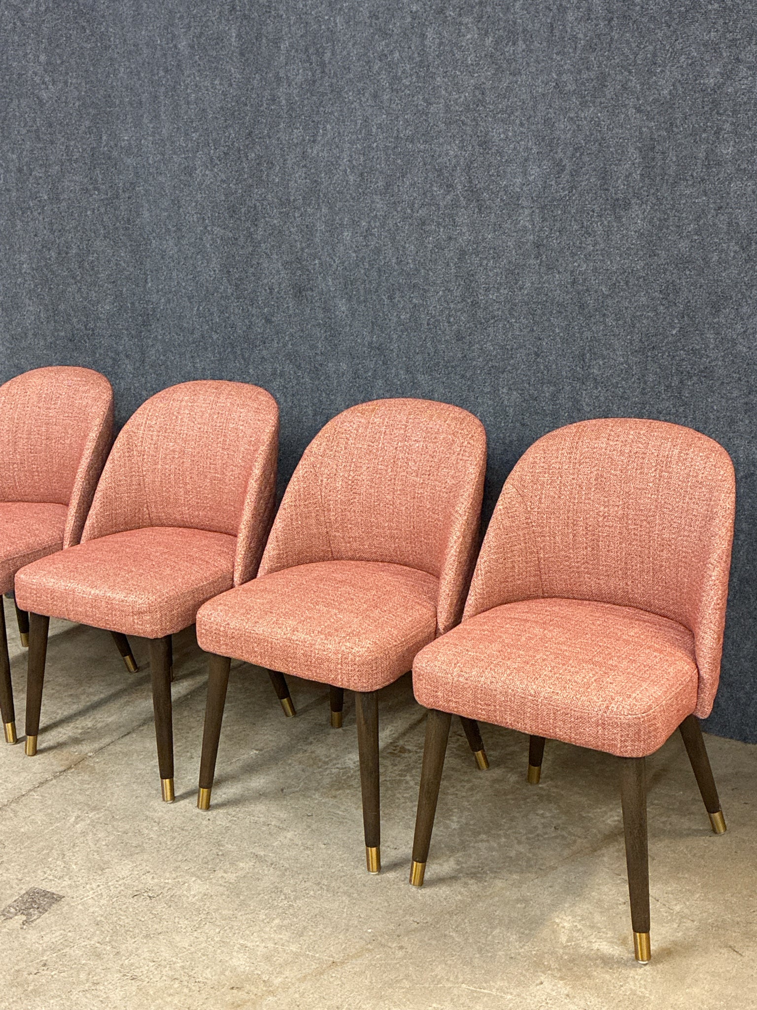 Set of 4 Coral Tweed Upholstered Dining Chairs