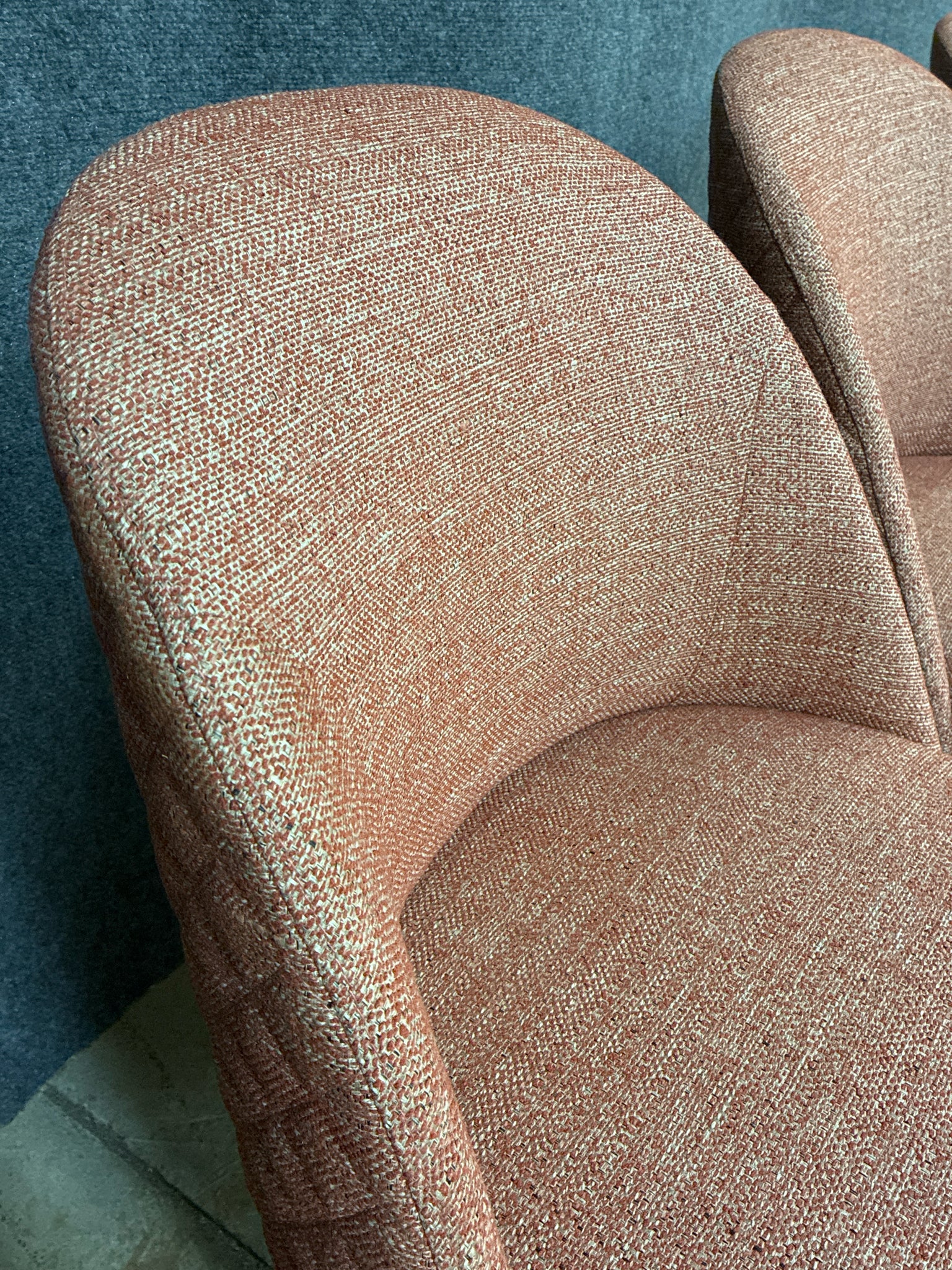 Set of 4 Coral Tweed Upholstered Dining Chairs. Dimensions: 20"W 24"D 32"H