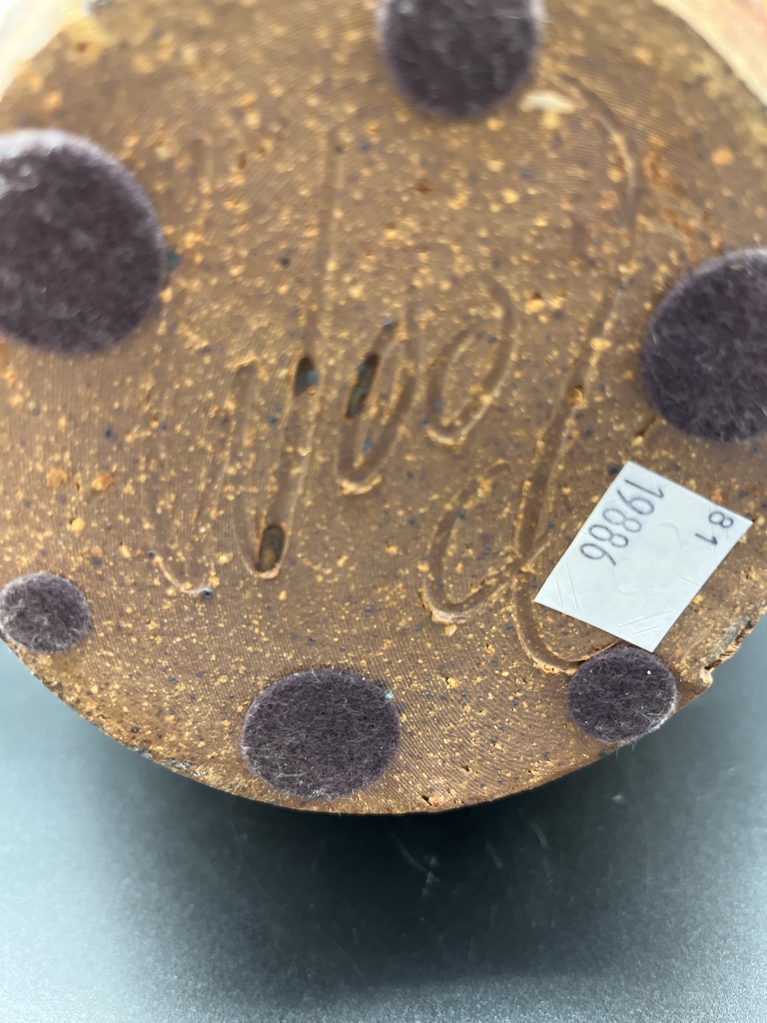 Vintage signed studio pottery pitcher, tan drip glaze with ice lip, 8" tall