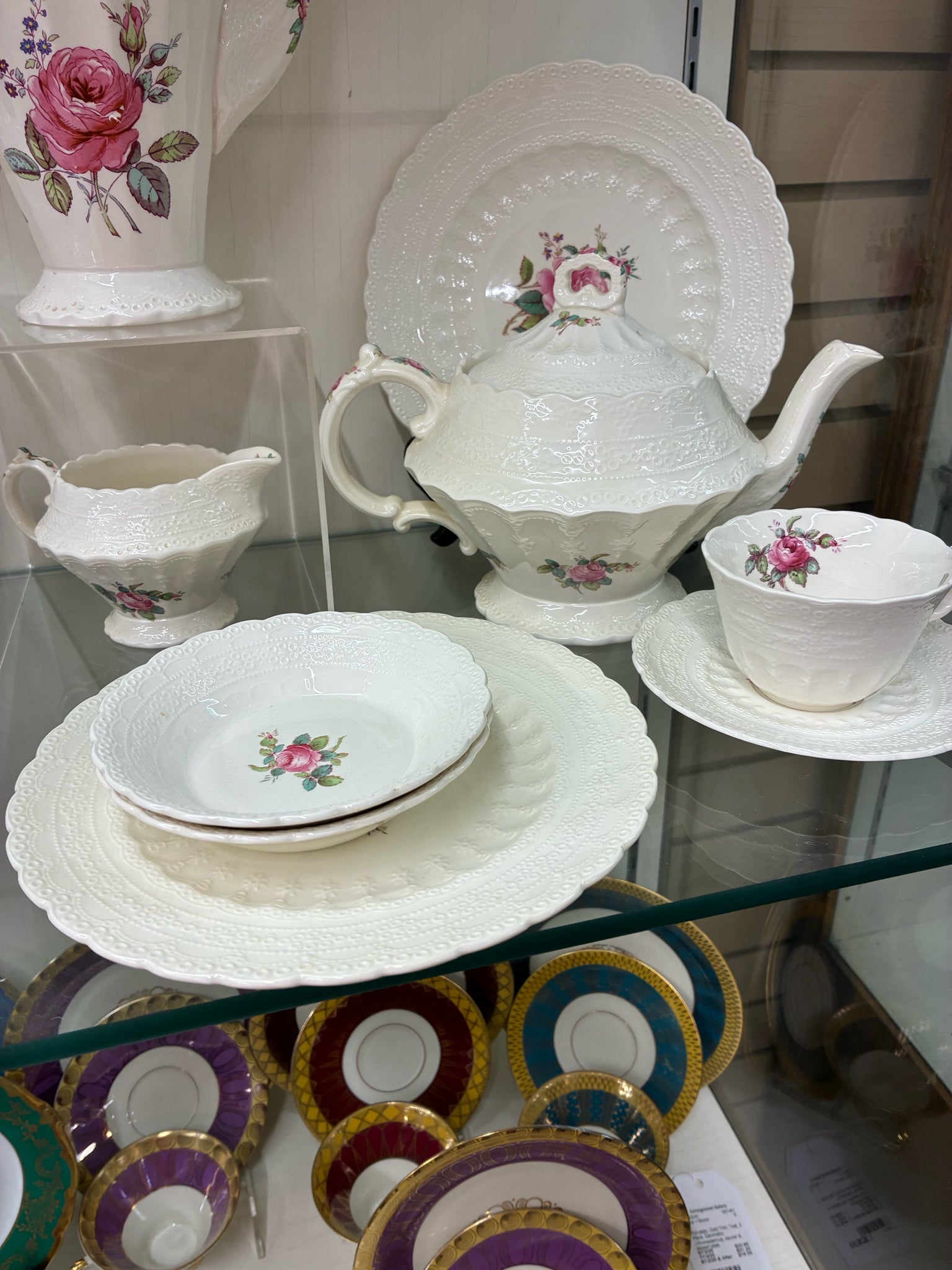 15pc Copeland Spode Billingsley Rose tea/coffee service - coffee pot, teapot, creamer, sugar, 2 tea cups, 2 saucers, 2 luncheon plates, 2 fruit bowls