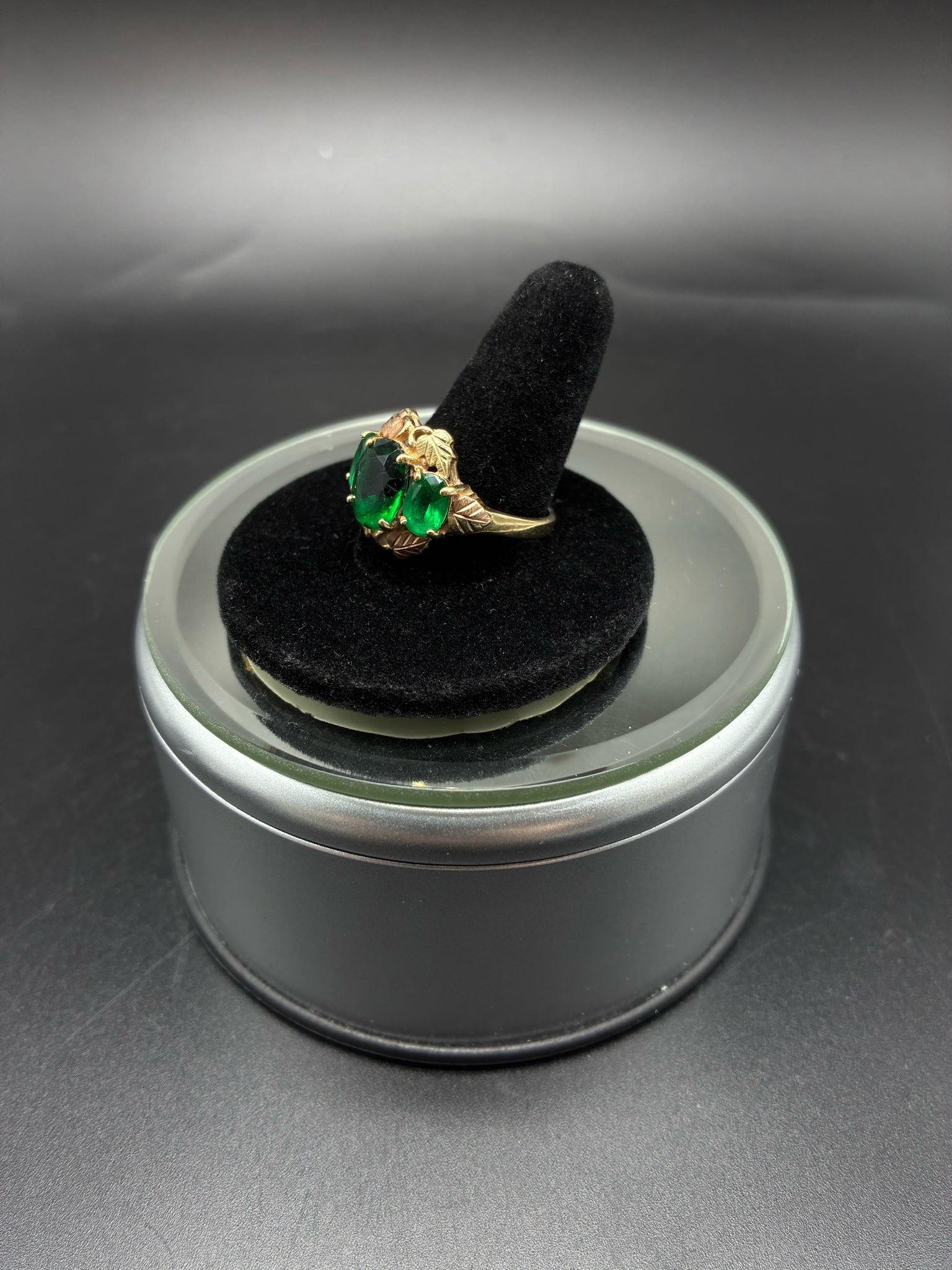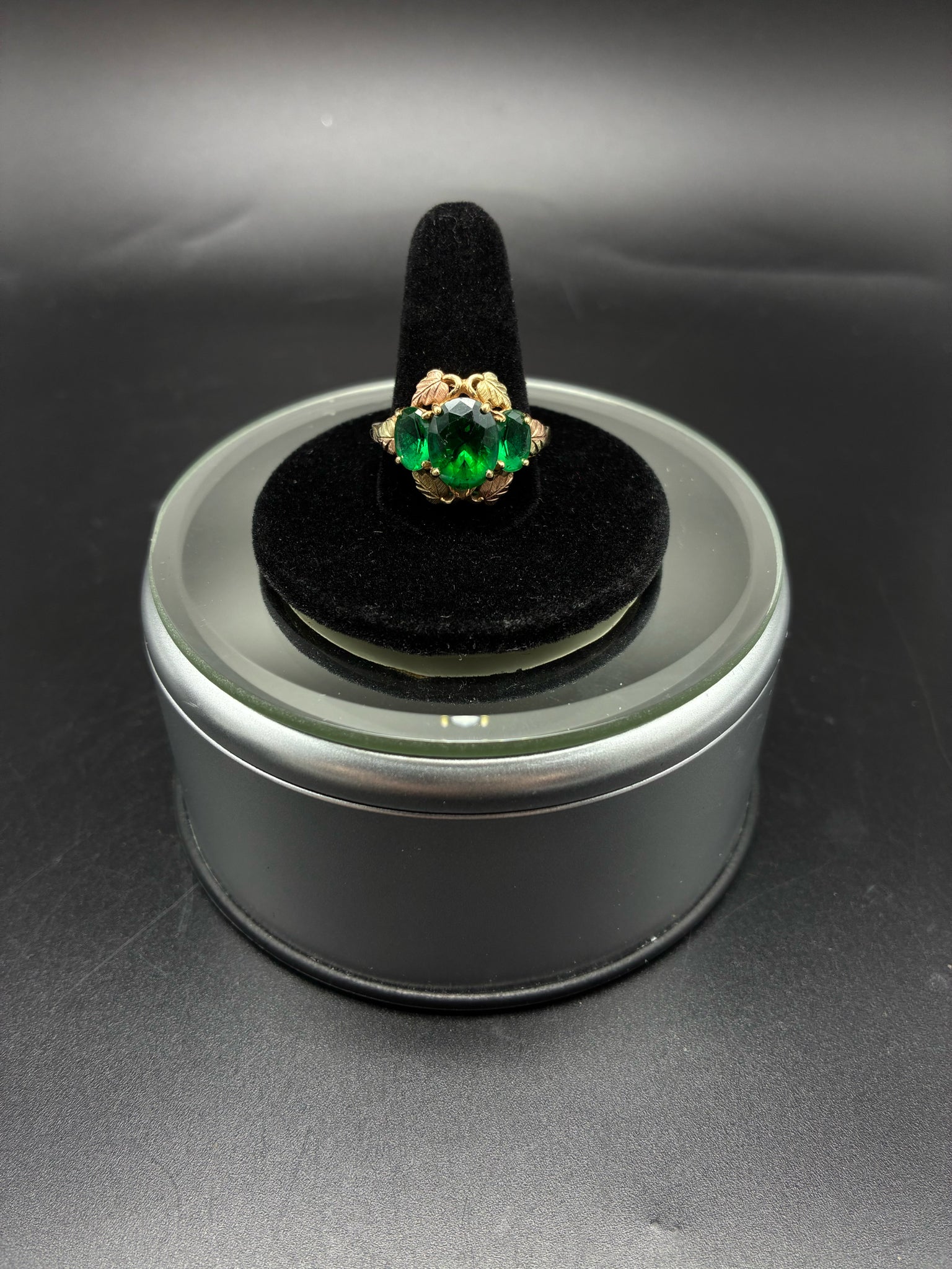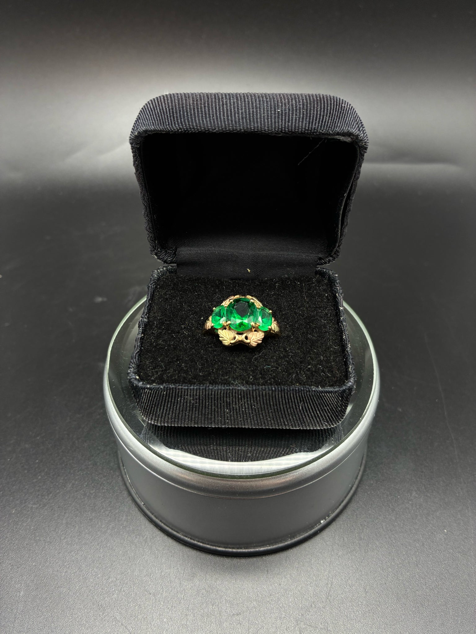 Coleman Co (CCO) Black Hills 10K yellow gold ring with green helenite stones, size 10