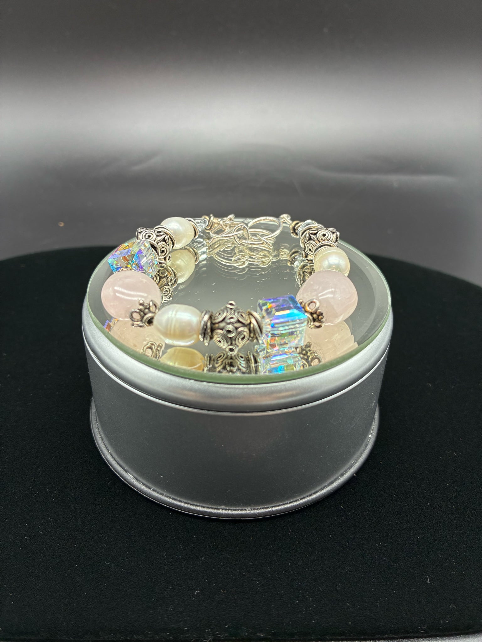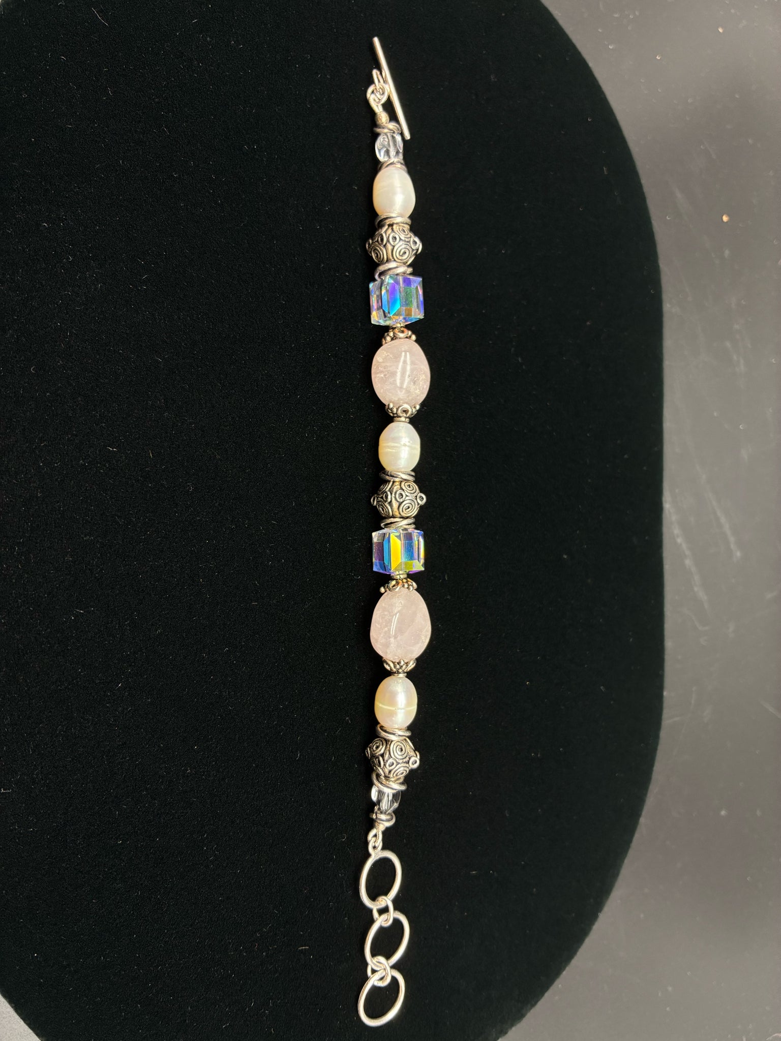 Teresa Harris Designs sterling silver pearl & rose quartz bracelet