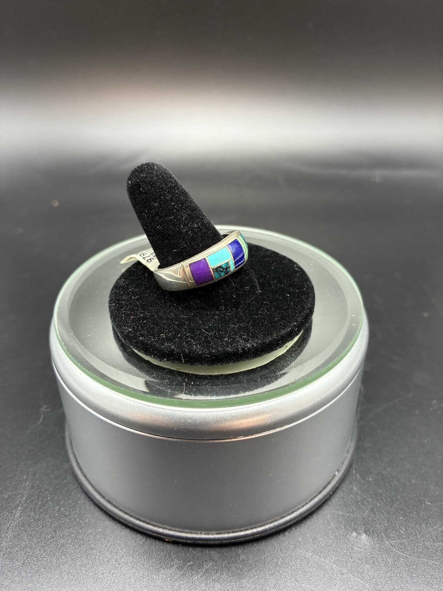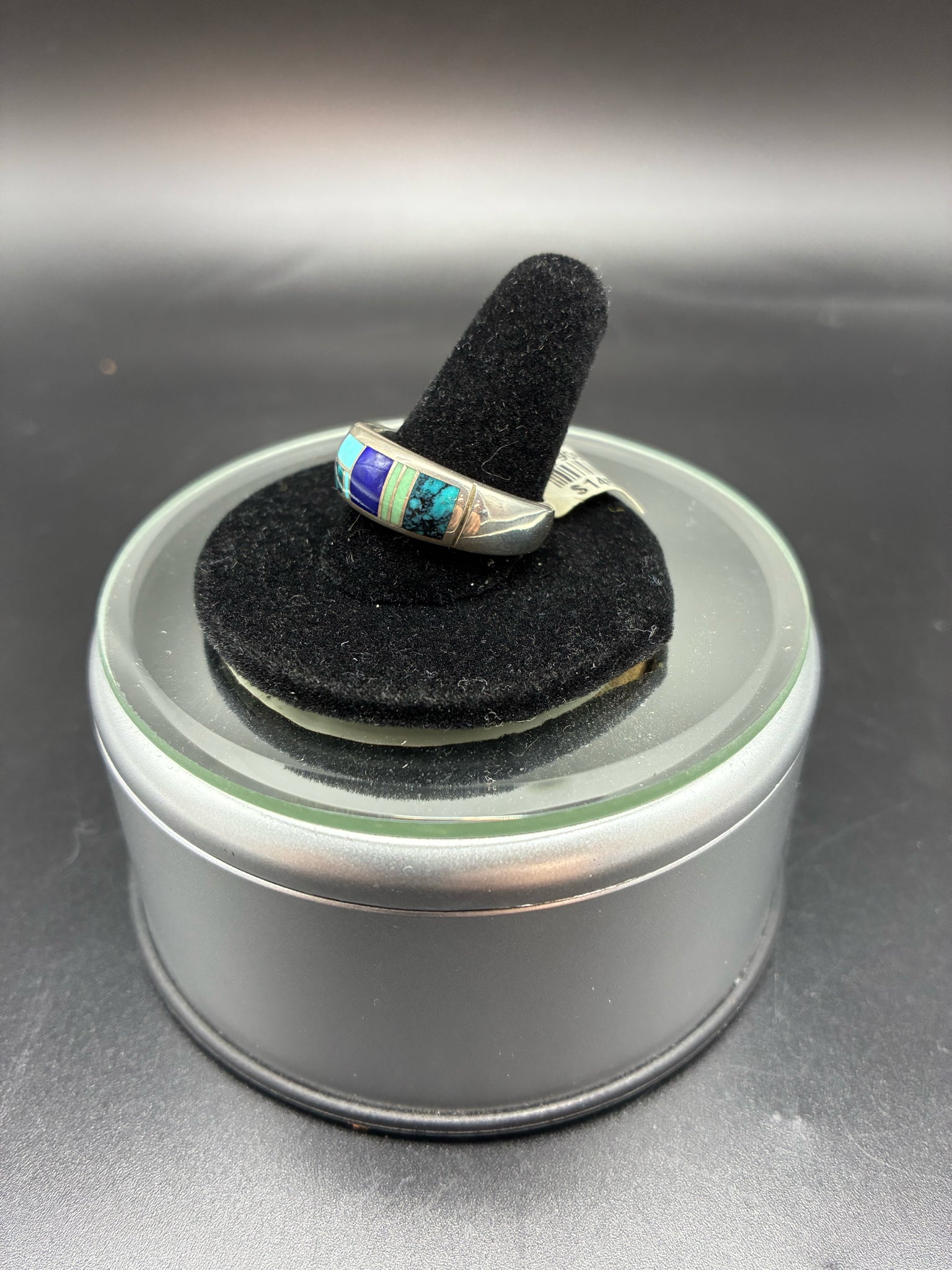 Navajo signed sterling silver multi stone inlay ring, size 10