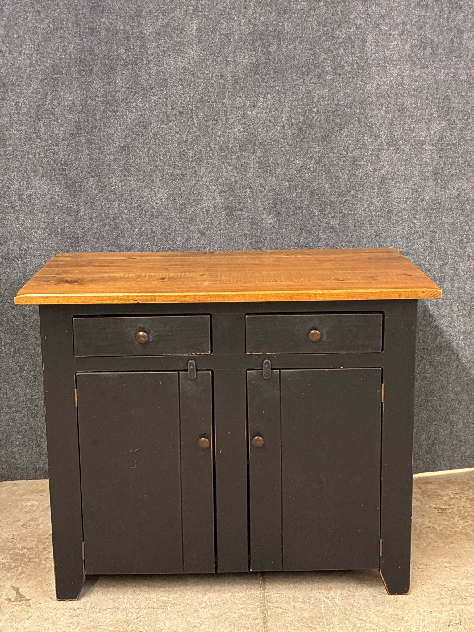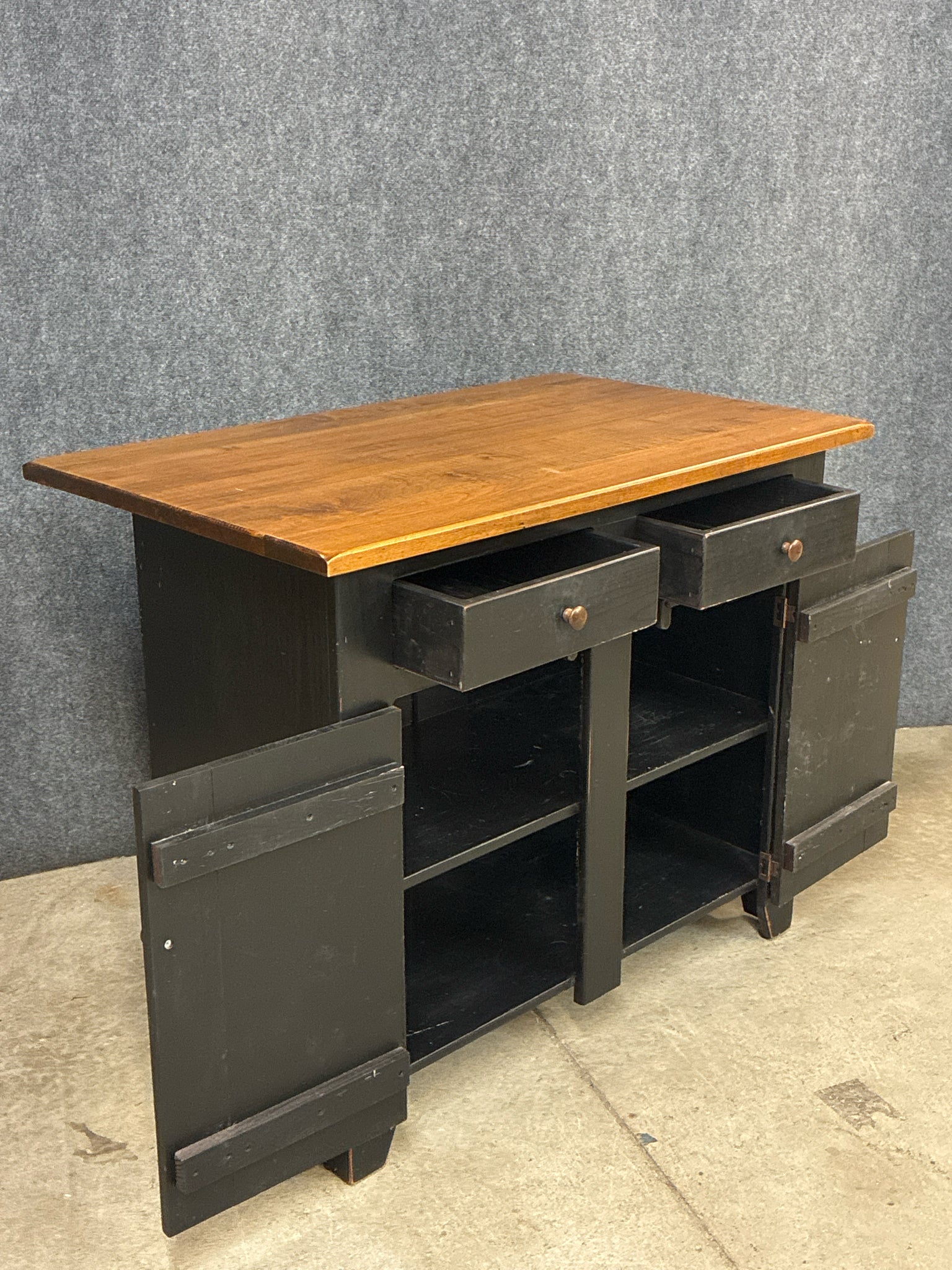 Farmhouse Style 2 Tone Kitchen Island. Dimensions: 44.5"W 27"D 36"H