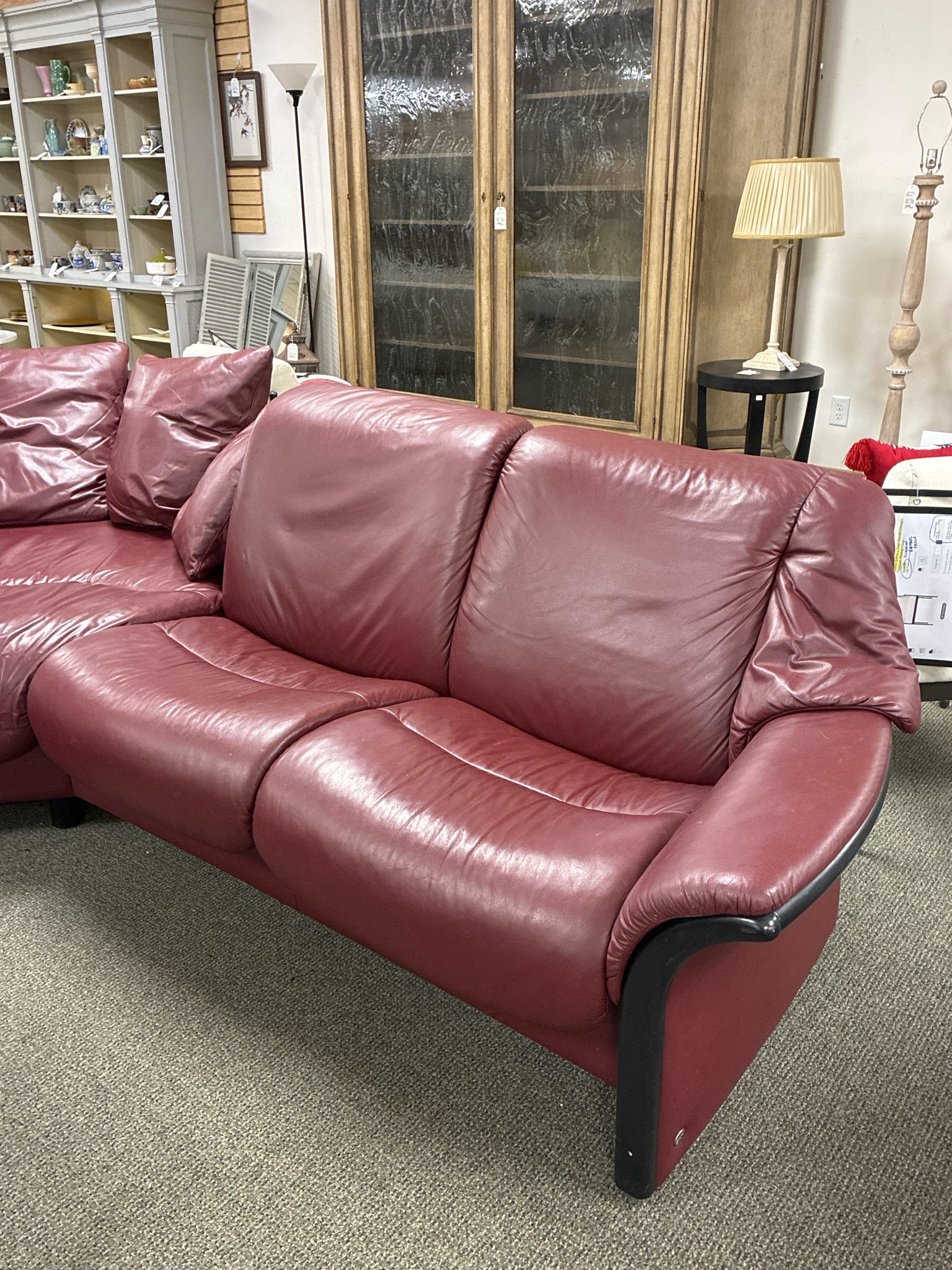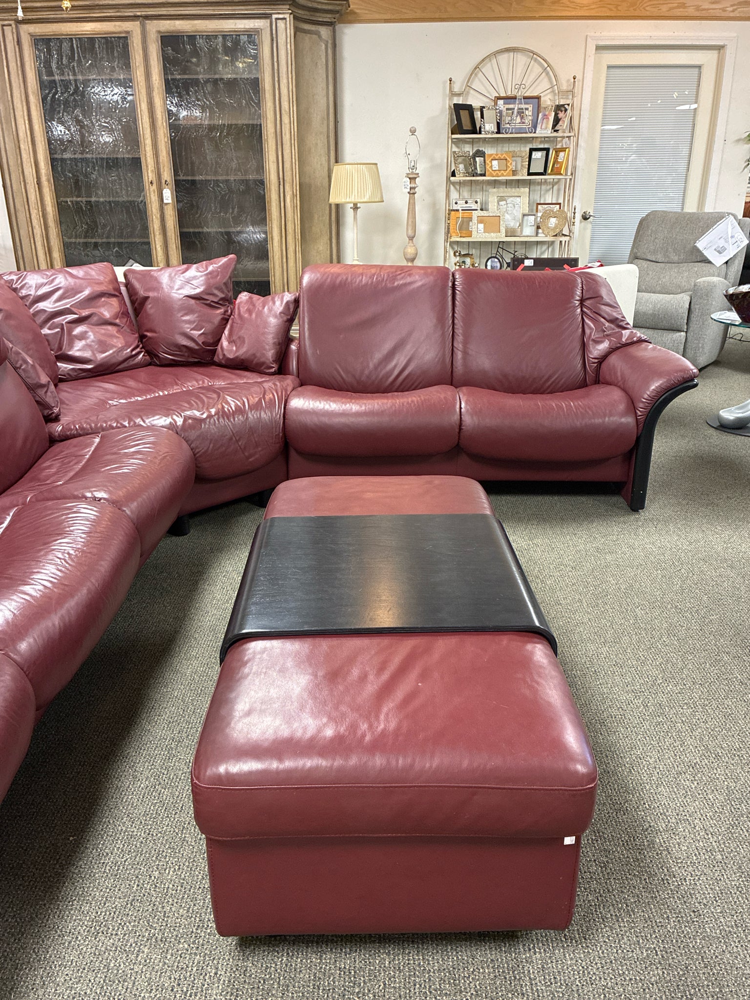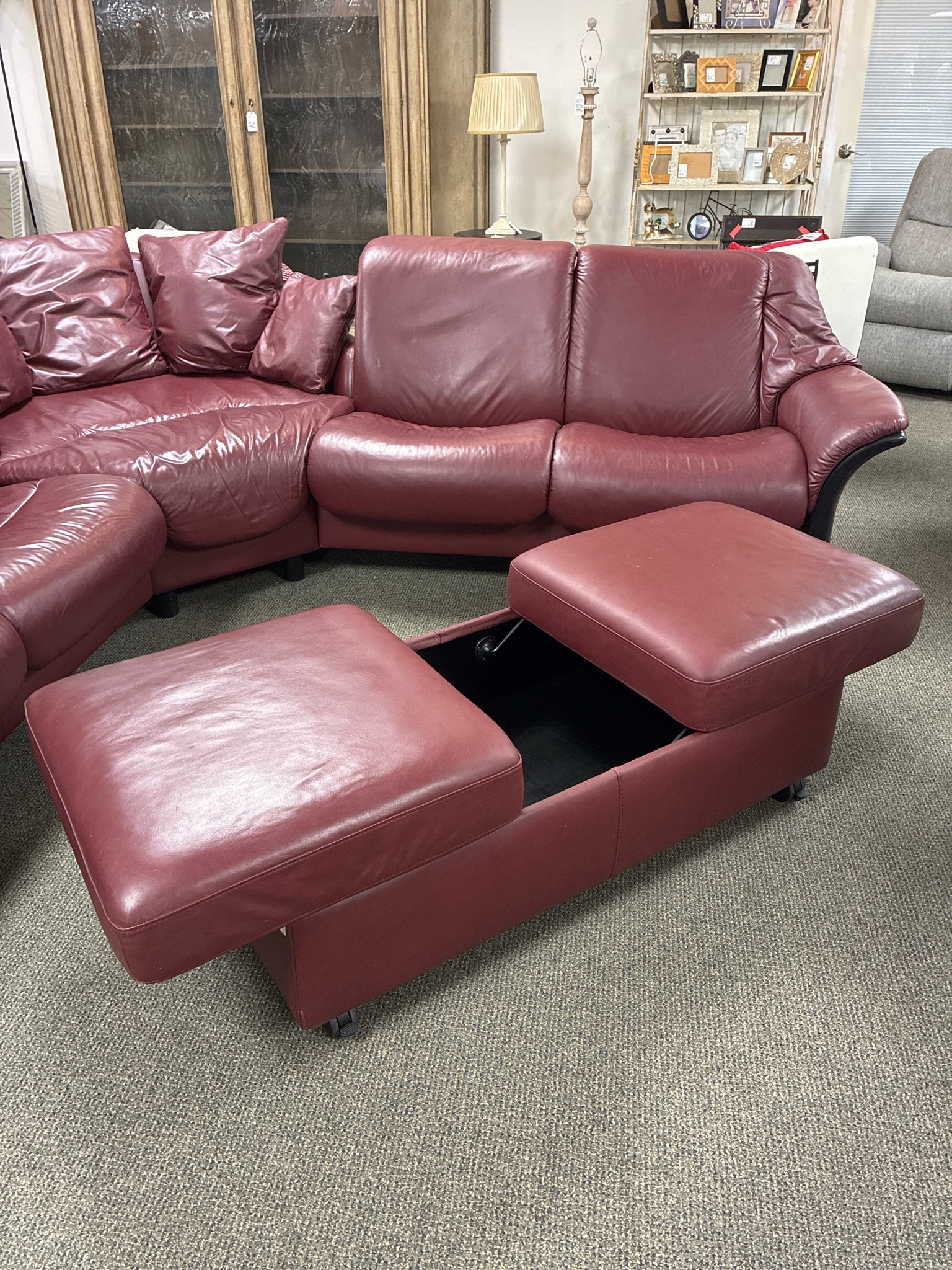 Ekornes Stressless Eldorado 3 Piece Leather Sectional With Storage Ottoman & Tray. Dimensions: 11'3" X 9' 32"Depth 39"Height