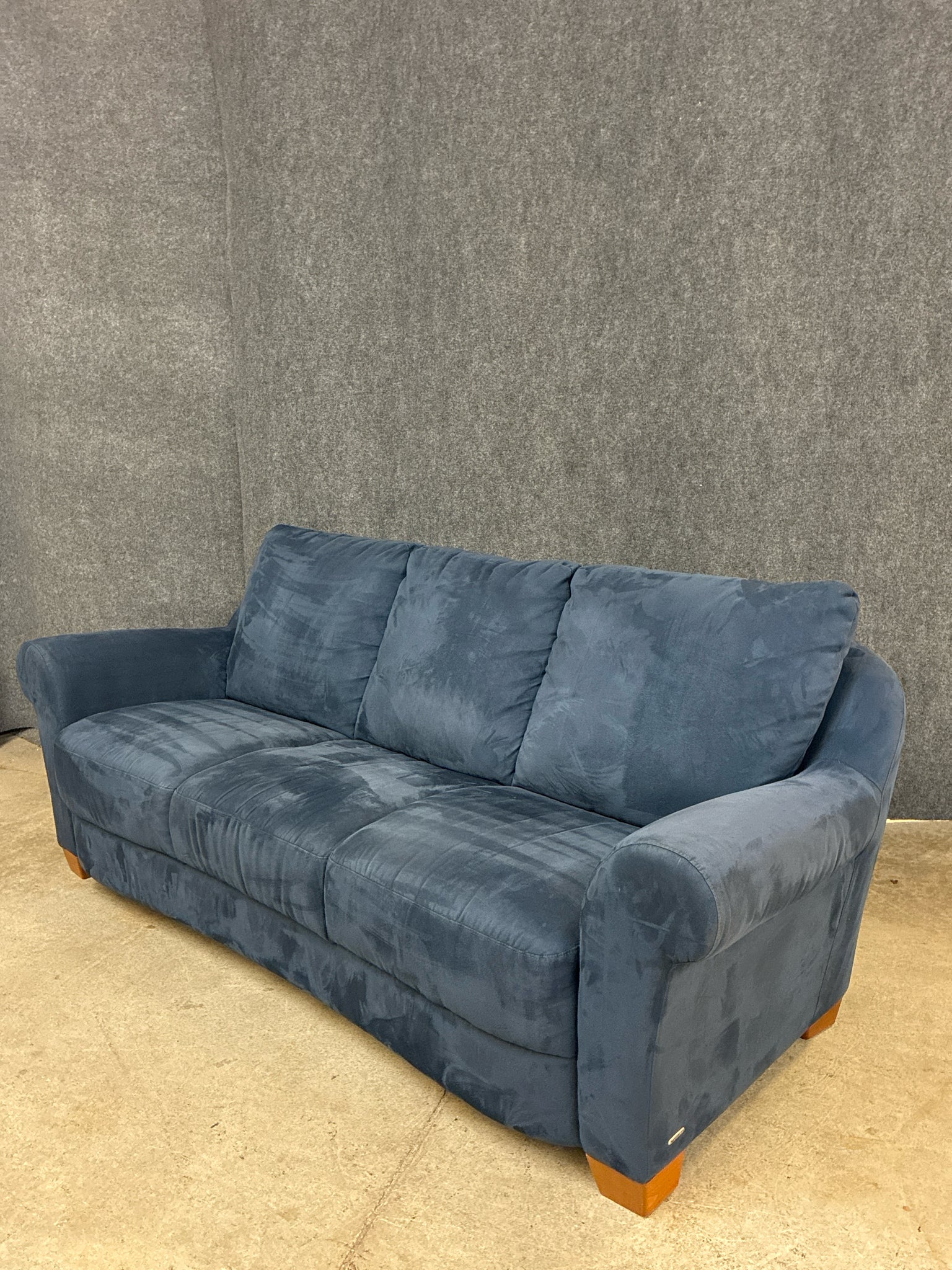 Natuzzi Blue Microfiber Sofa. Dimensions: 88"W 38"D 34"H