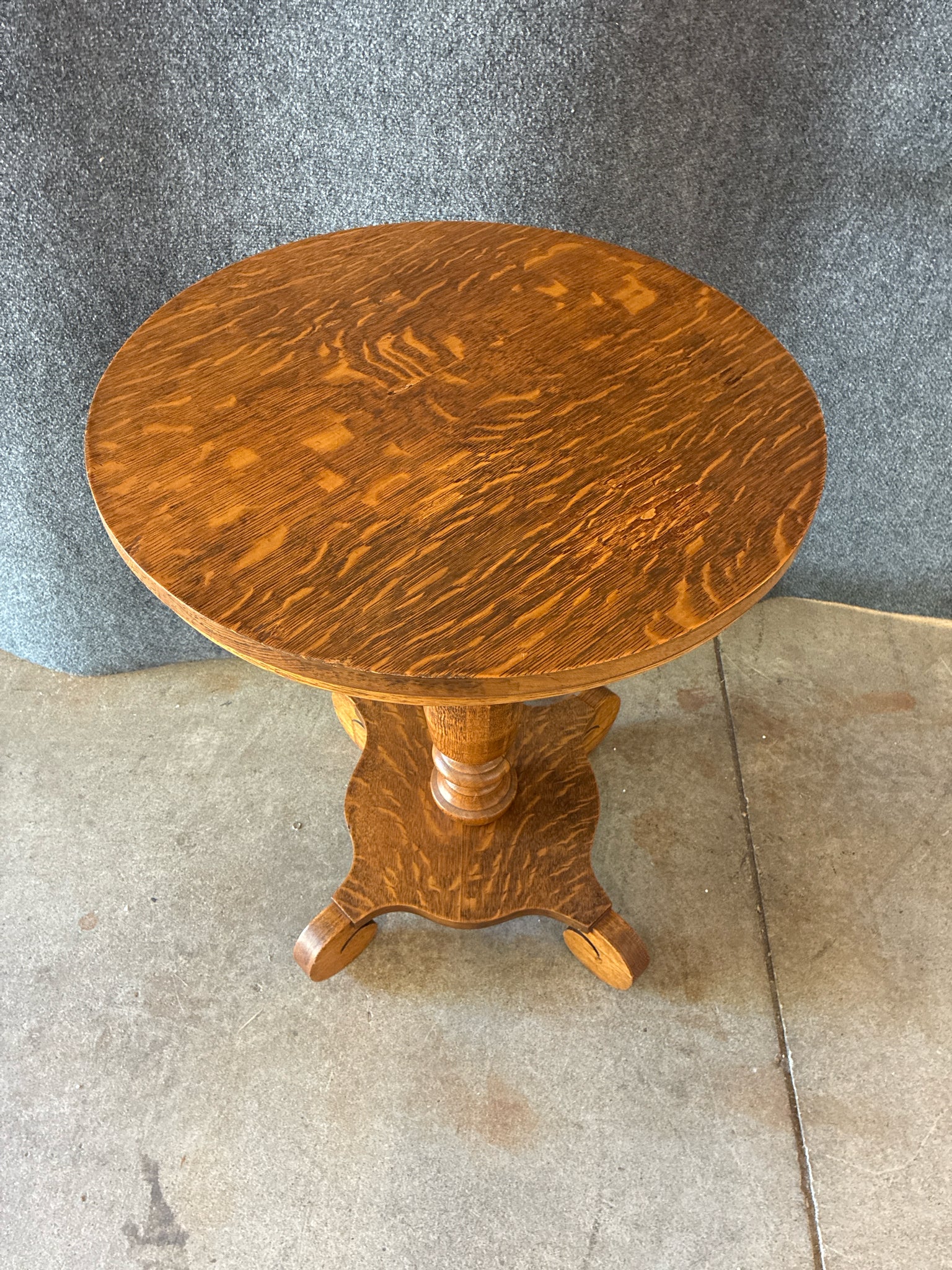 Oak Pedestal Side Table. Dimensions: Diameter 23.5" height 30"