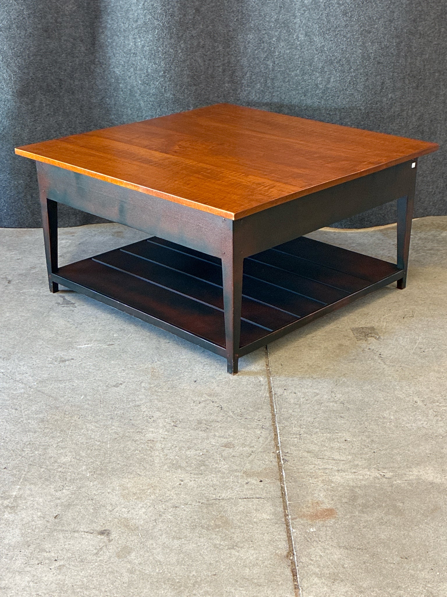 Shaker Style Black and Cherry Coffee Table w/ Bottom Shelf. Dimensions: length 42" width 42" height 22"