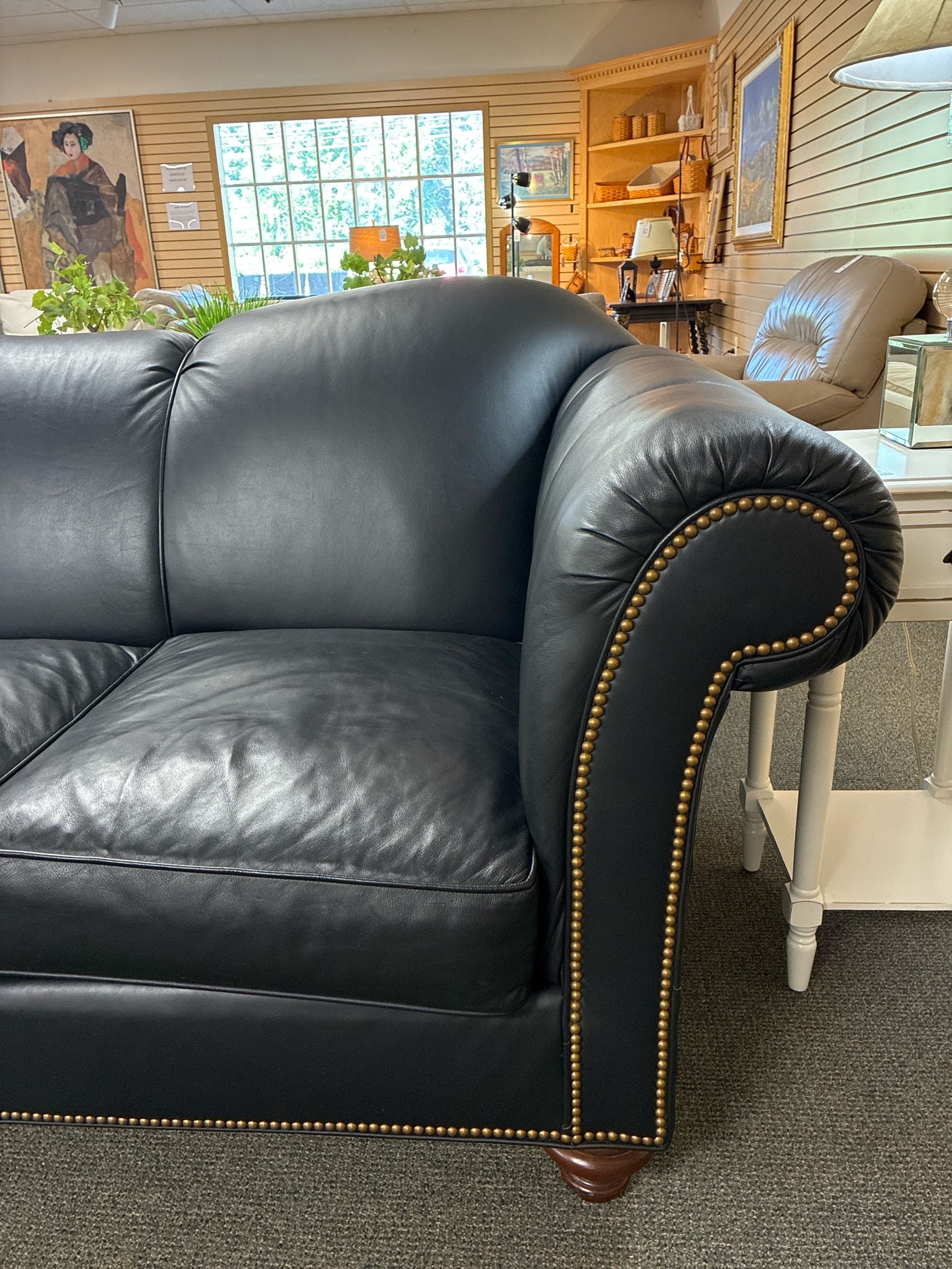 Southwood Black Leather Sofa with Nailhead Trim. Dimensions: 96"W 40"D 36"H