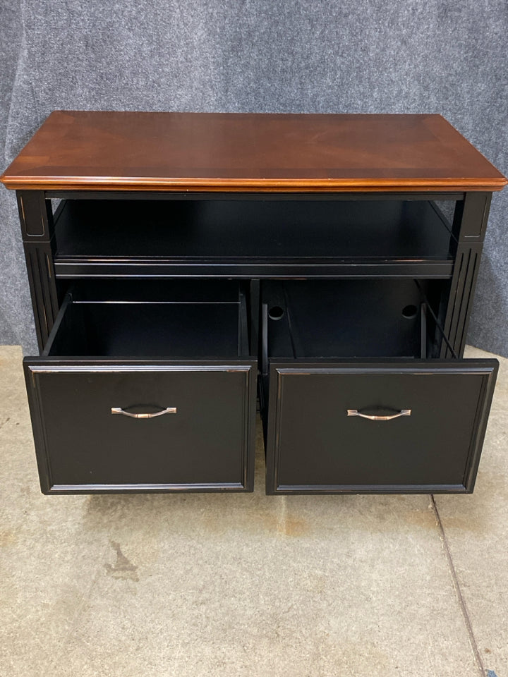 Two-Tone Wood & Black Filing Console Table. Dimensions: length 41" width 22" height 30.5"
