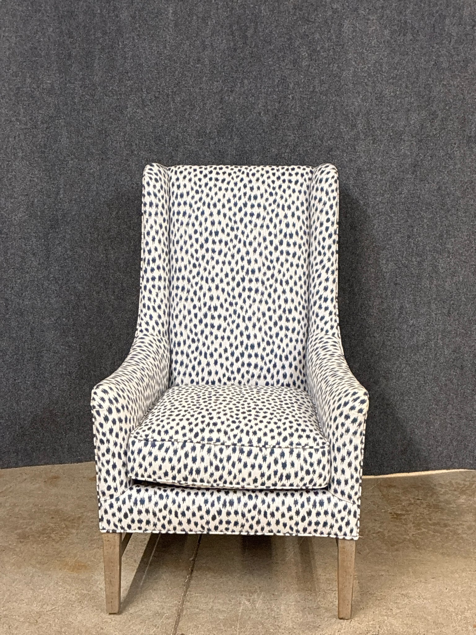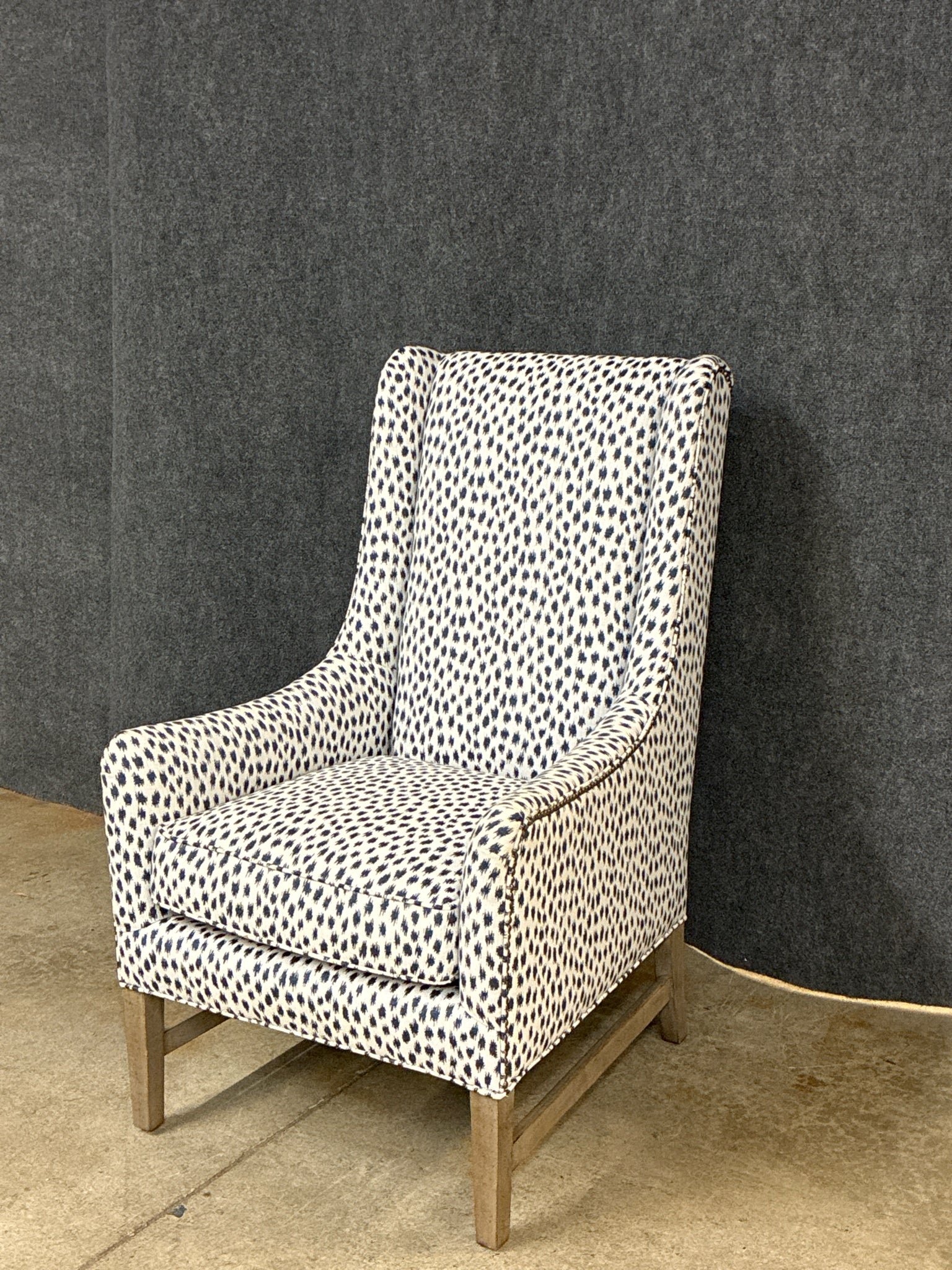 Wesley Hall Blue/White Arm Chair With Nailhead Trim. Dimensions: 29"W 35"D 45"H
