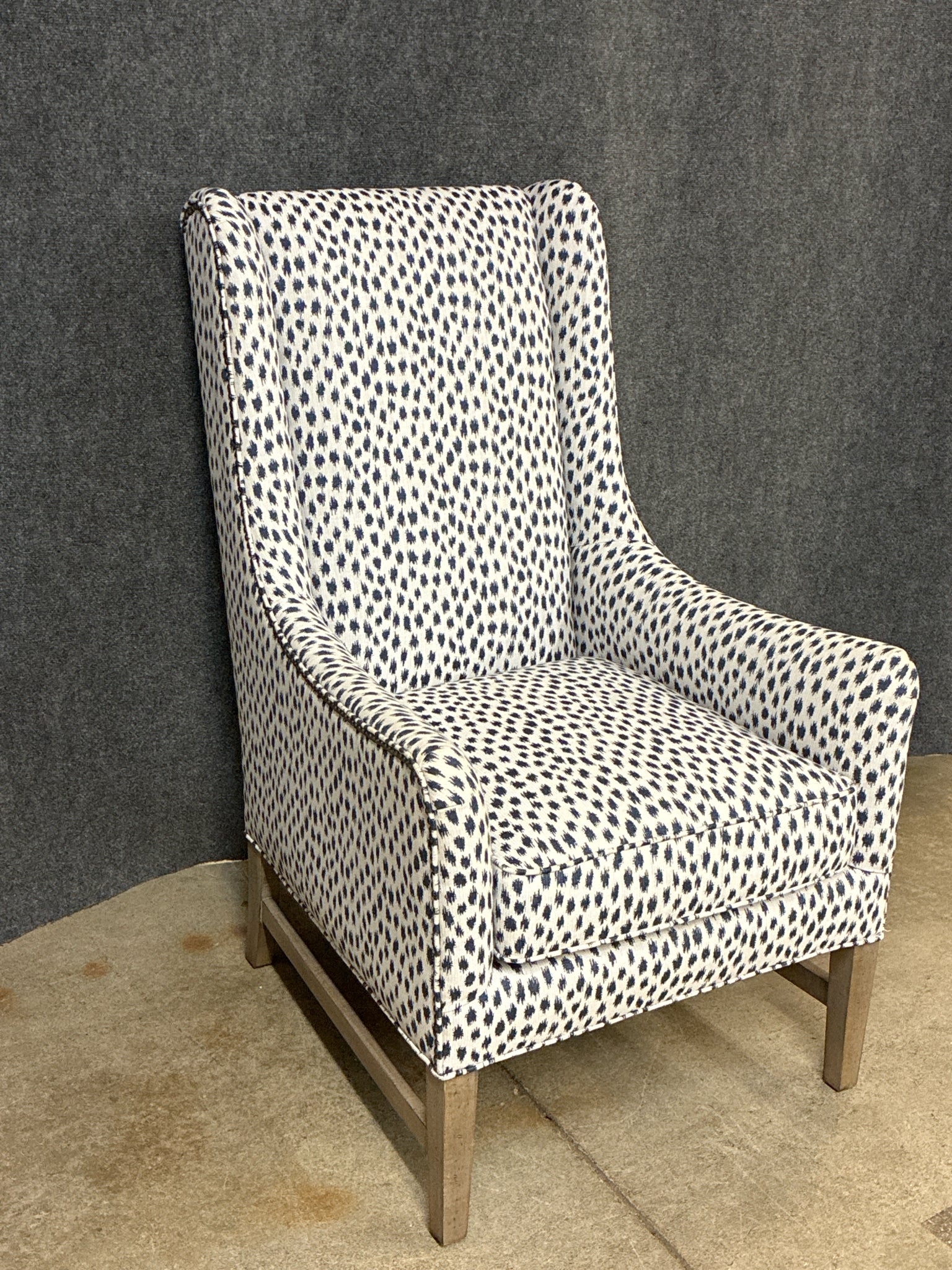 Wesley Hall Blue/White Arm Chair With Nailhead Trim. Dimensions: 29"W 35"D 45"H
