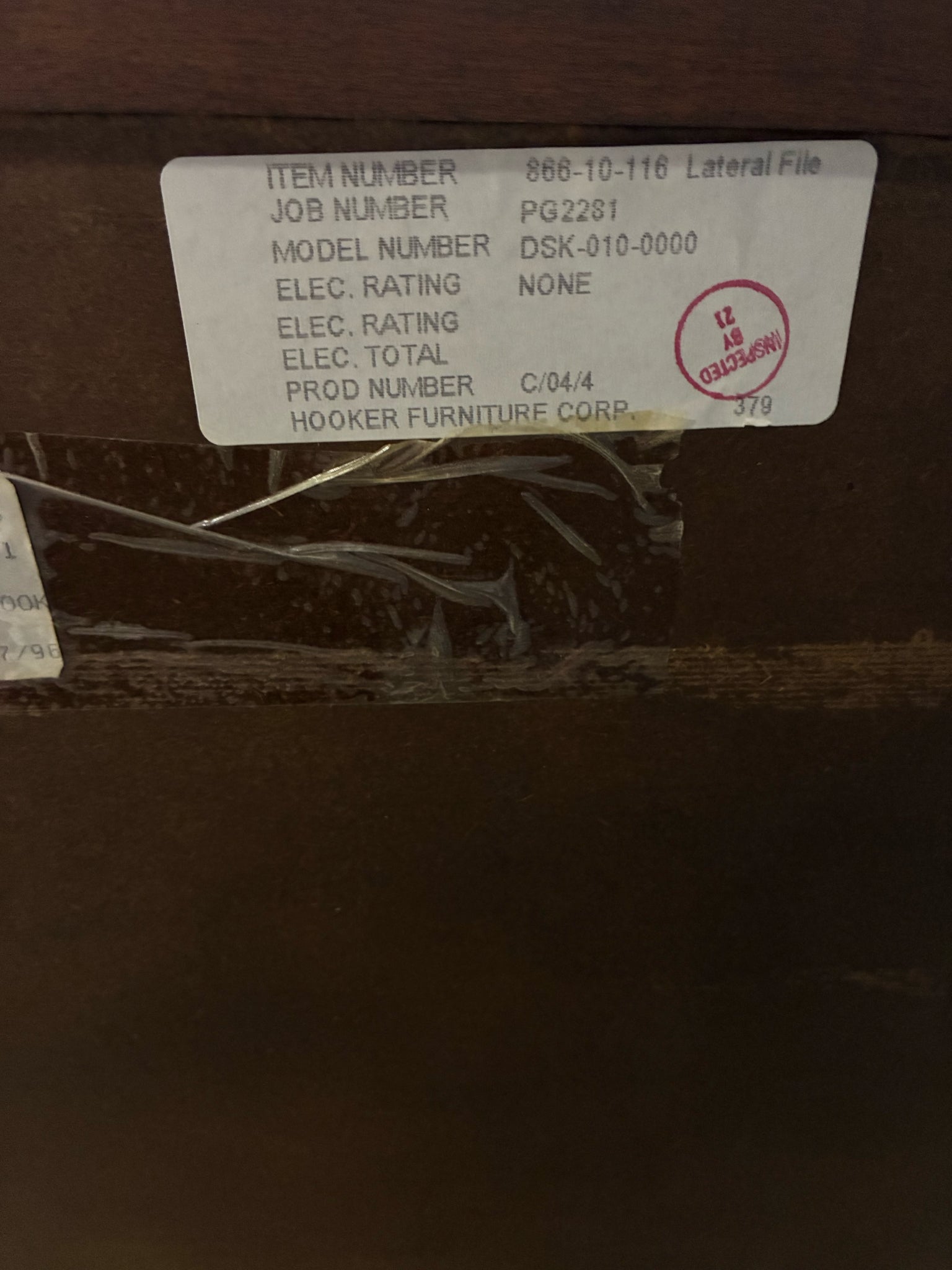 Hooker Furniture Cherry Lateral File Cabinet. Dimensions: 30"W 23"D 30"H
