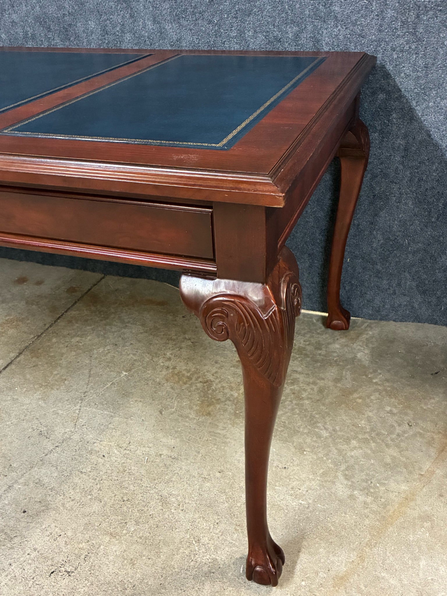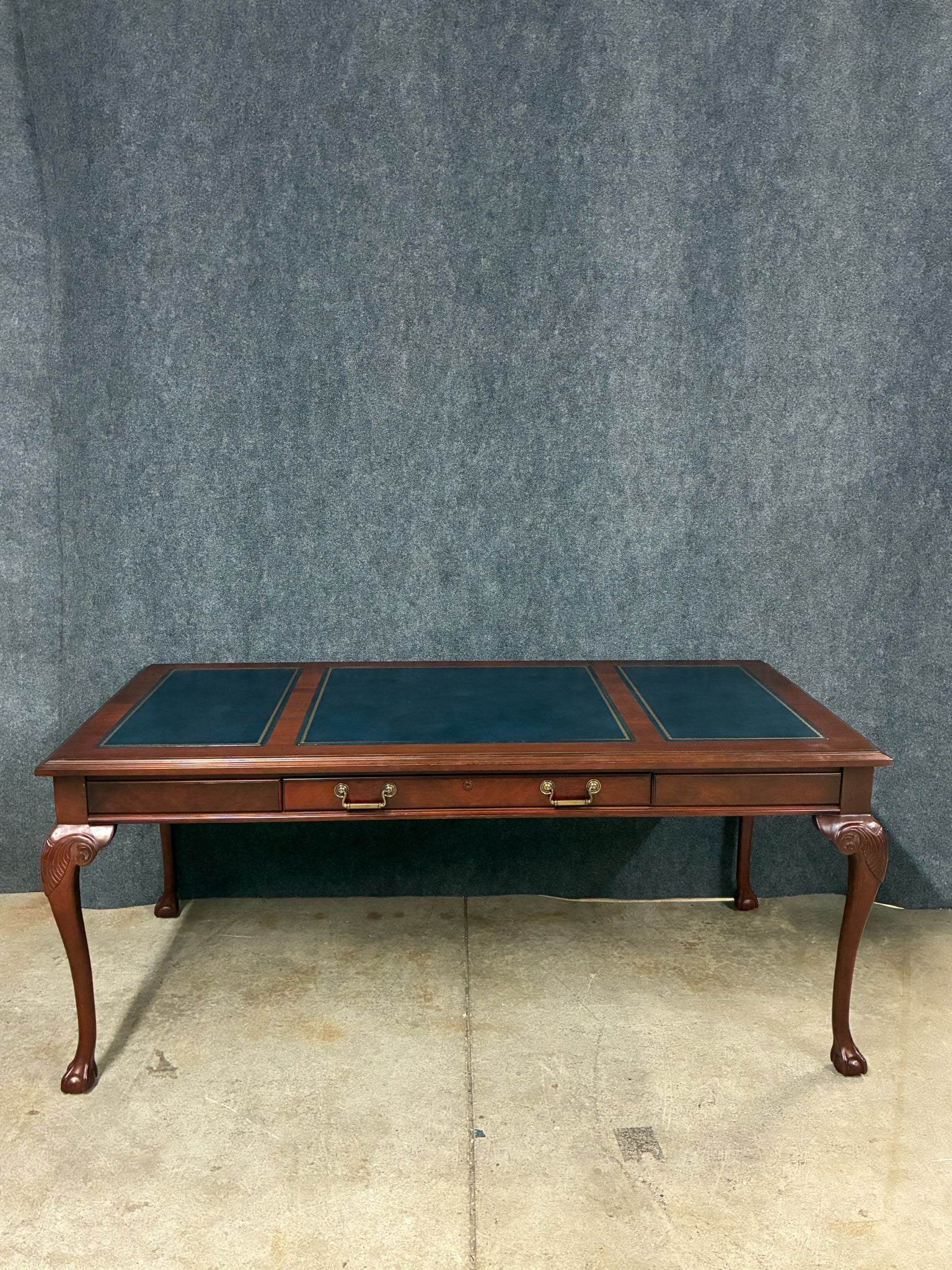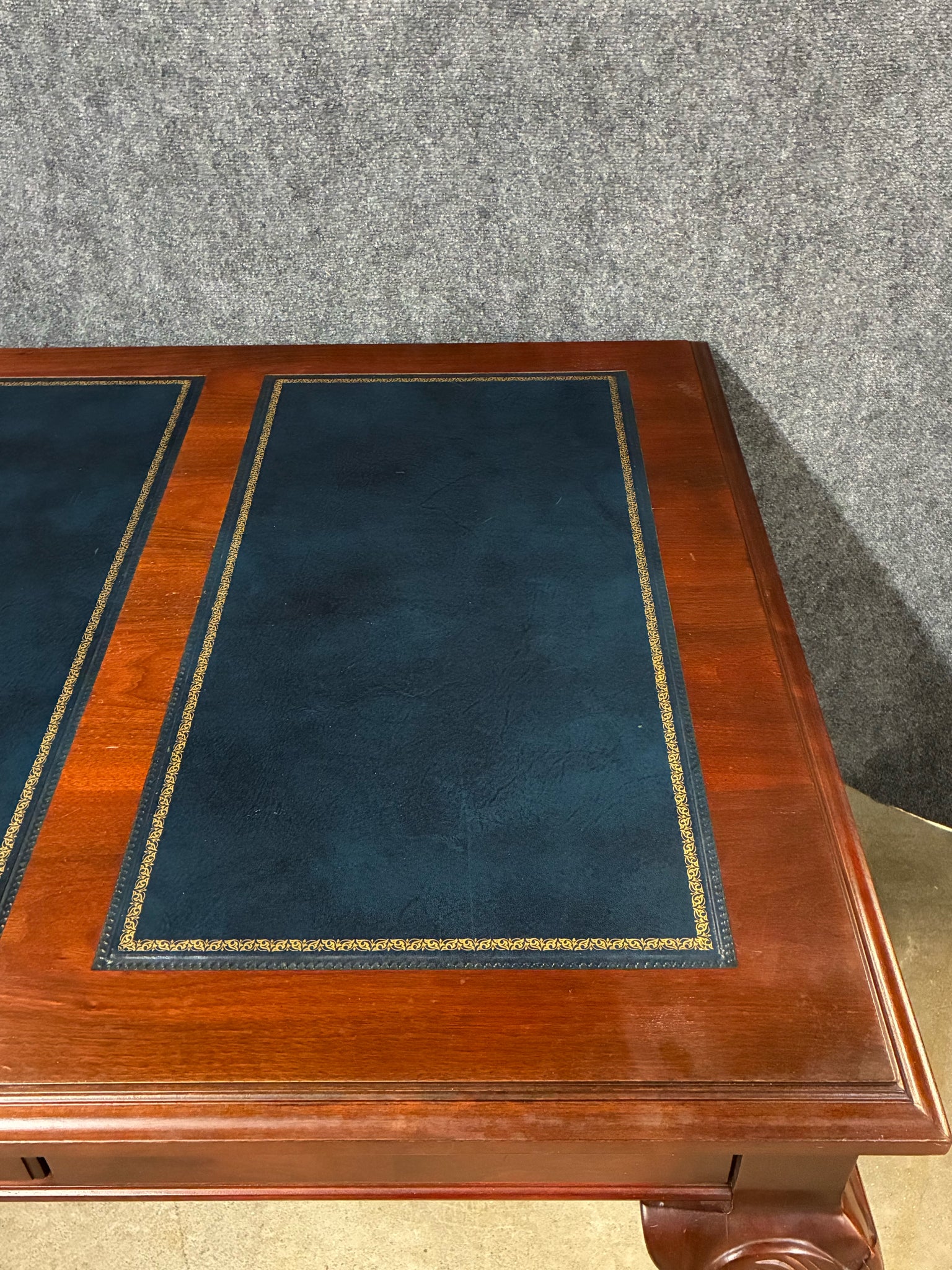 Kimball International Traditional Mahogany Leather-Top Writing Desk. Dimensions: 72"W 36"D 30"H