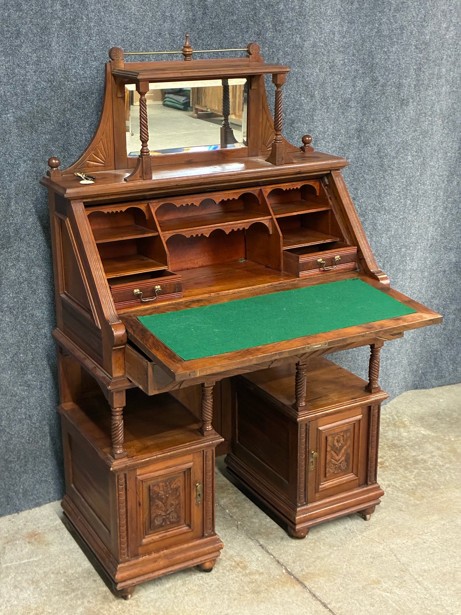 Victorian/Eastlake Style Walnut Secretary Desk with Mirror