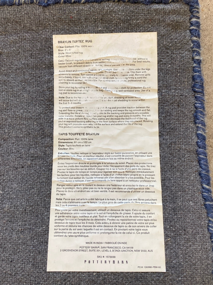 Pottery Barn Braylin Tufted Wool Rug. Dimensions: 3' x 5'