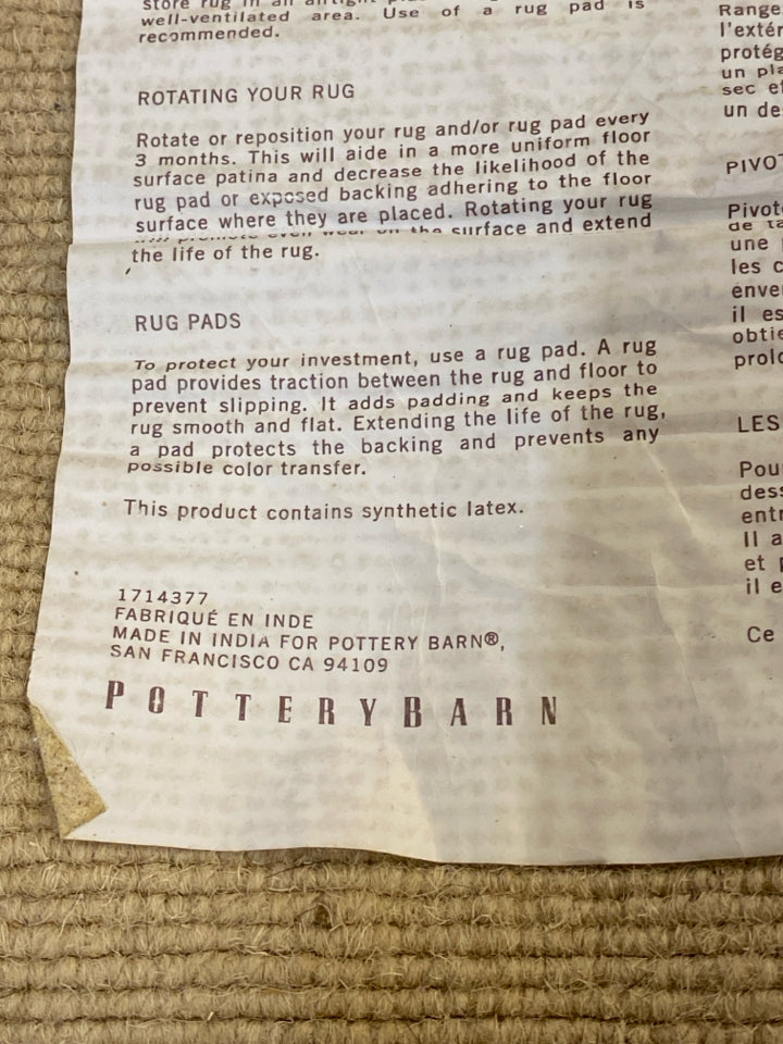 5'7" X 2'11" Pottery Barn Tan/Golden Area Rug