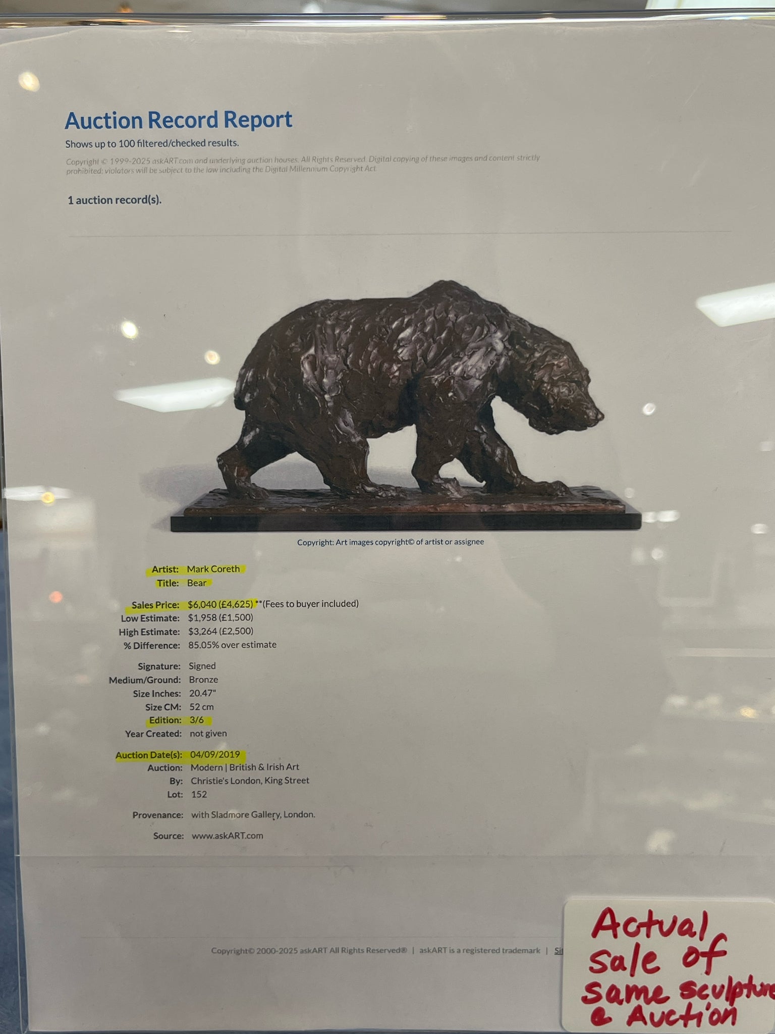 Mark Coreth bronze sculpture "Bear", limited edition 4/6, 21" L x 7.5" D x 12" H