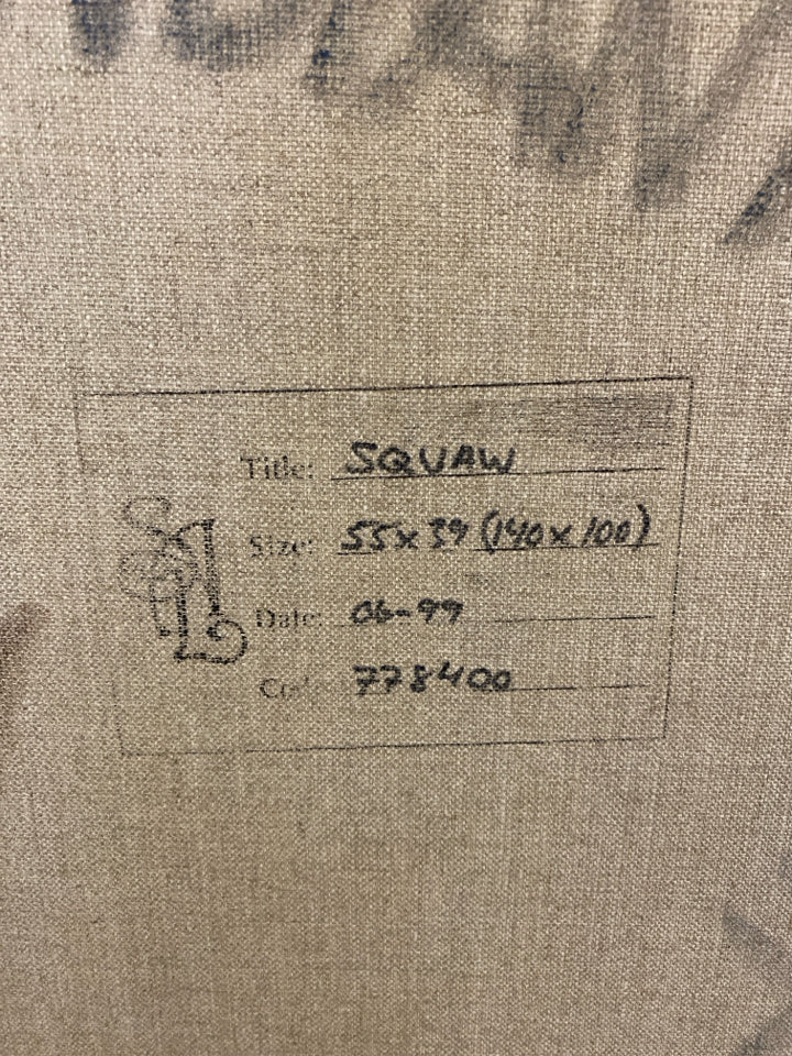 Lennart Olausson "Squaw" Original Oil Painting. Dimensions: 55" X 39"