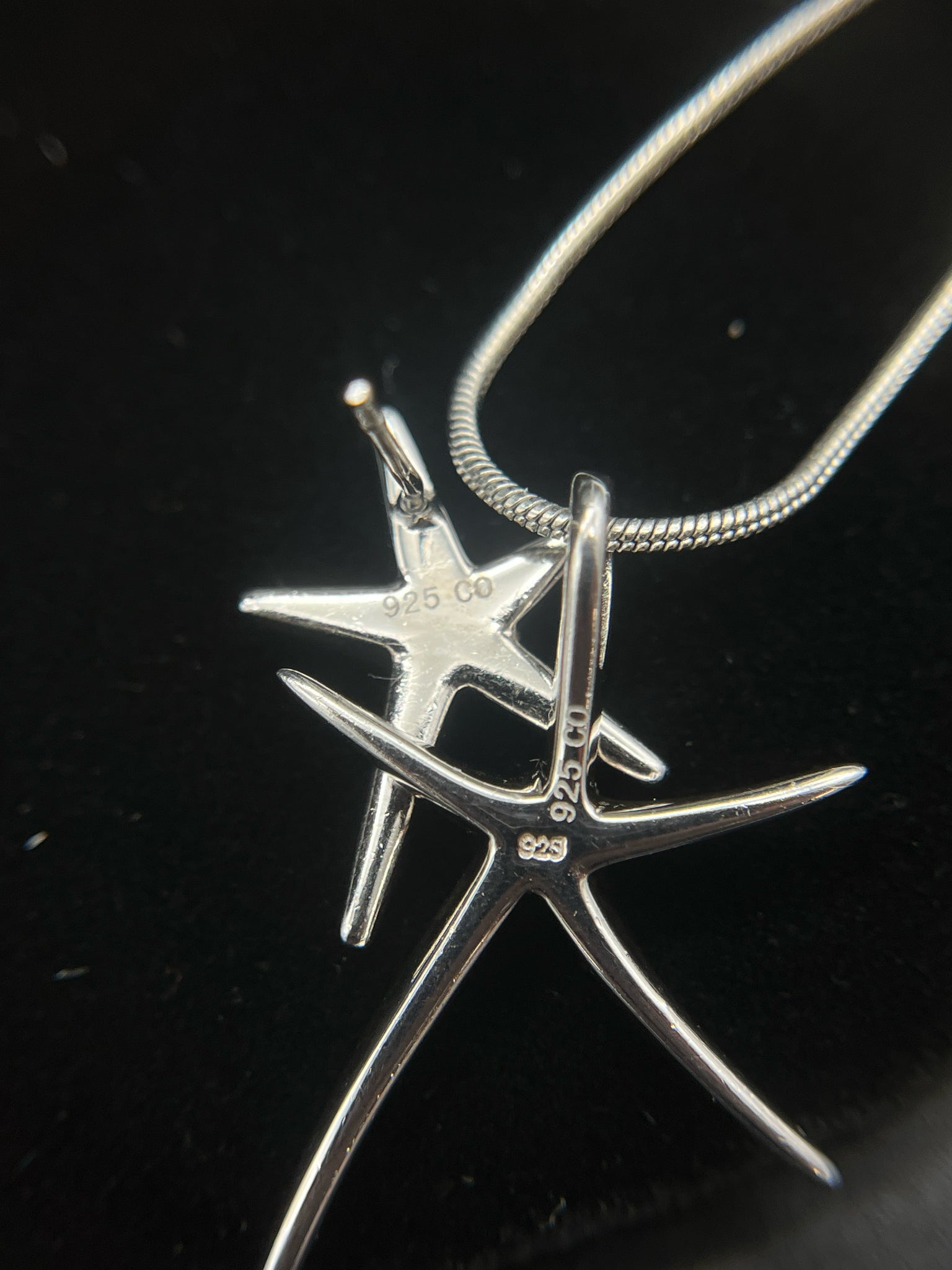 sterling silver blue opal-like starfish pendant necklace + dangle earrings