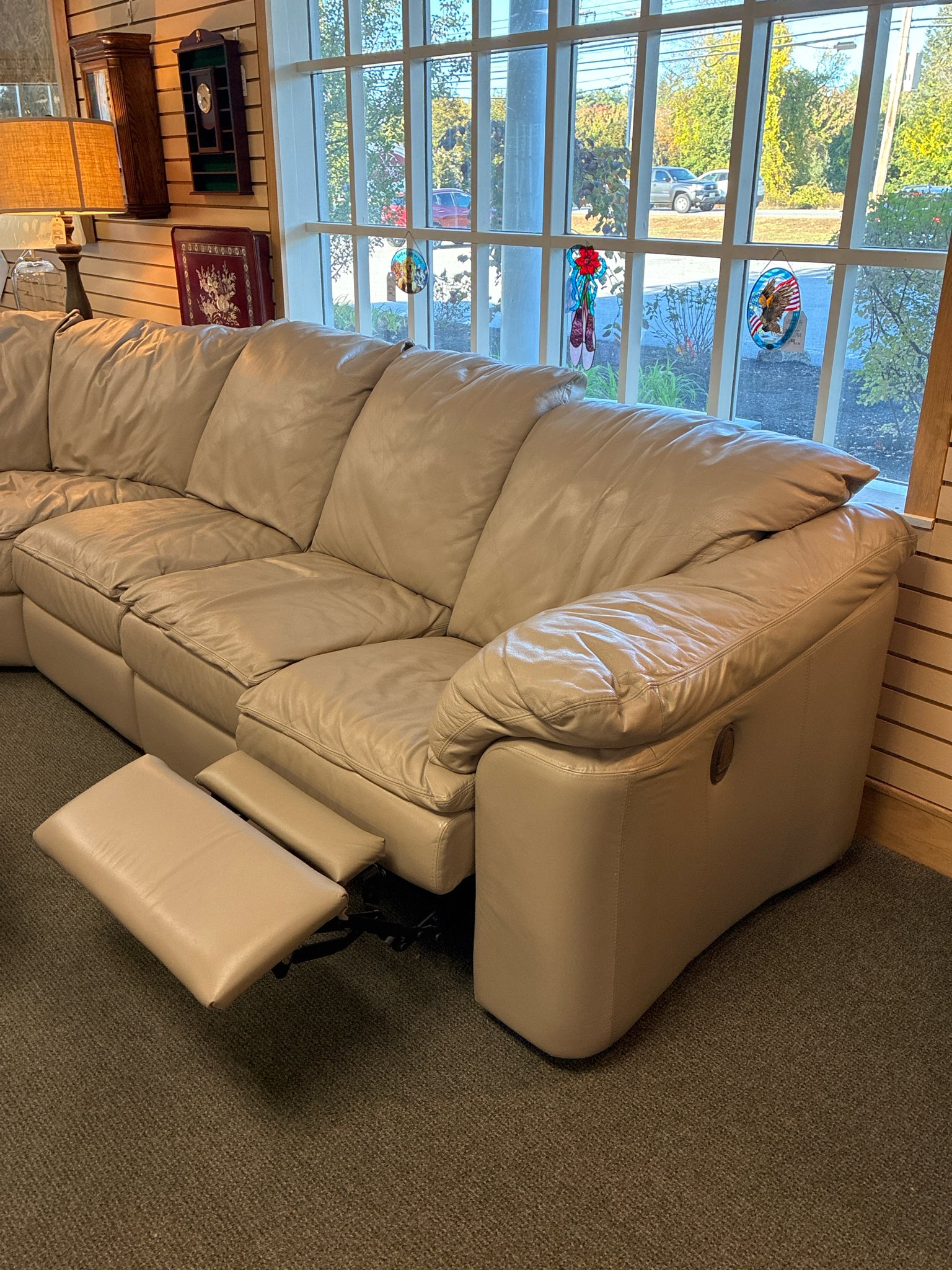 Beige Leather Reclining Sectional Sofa
