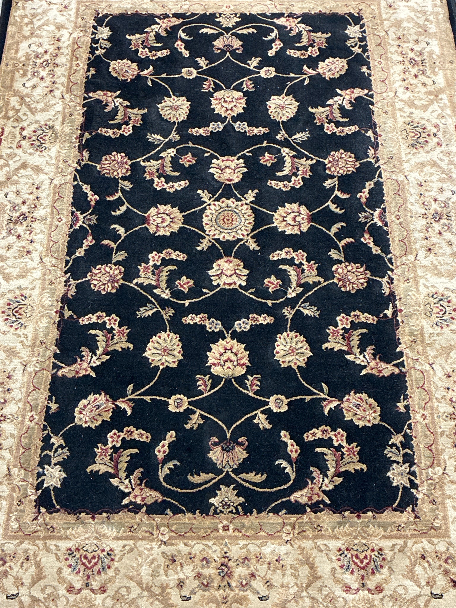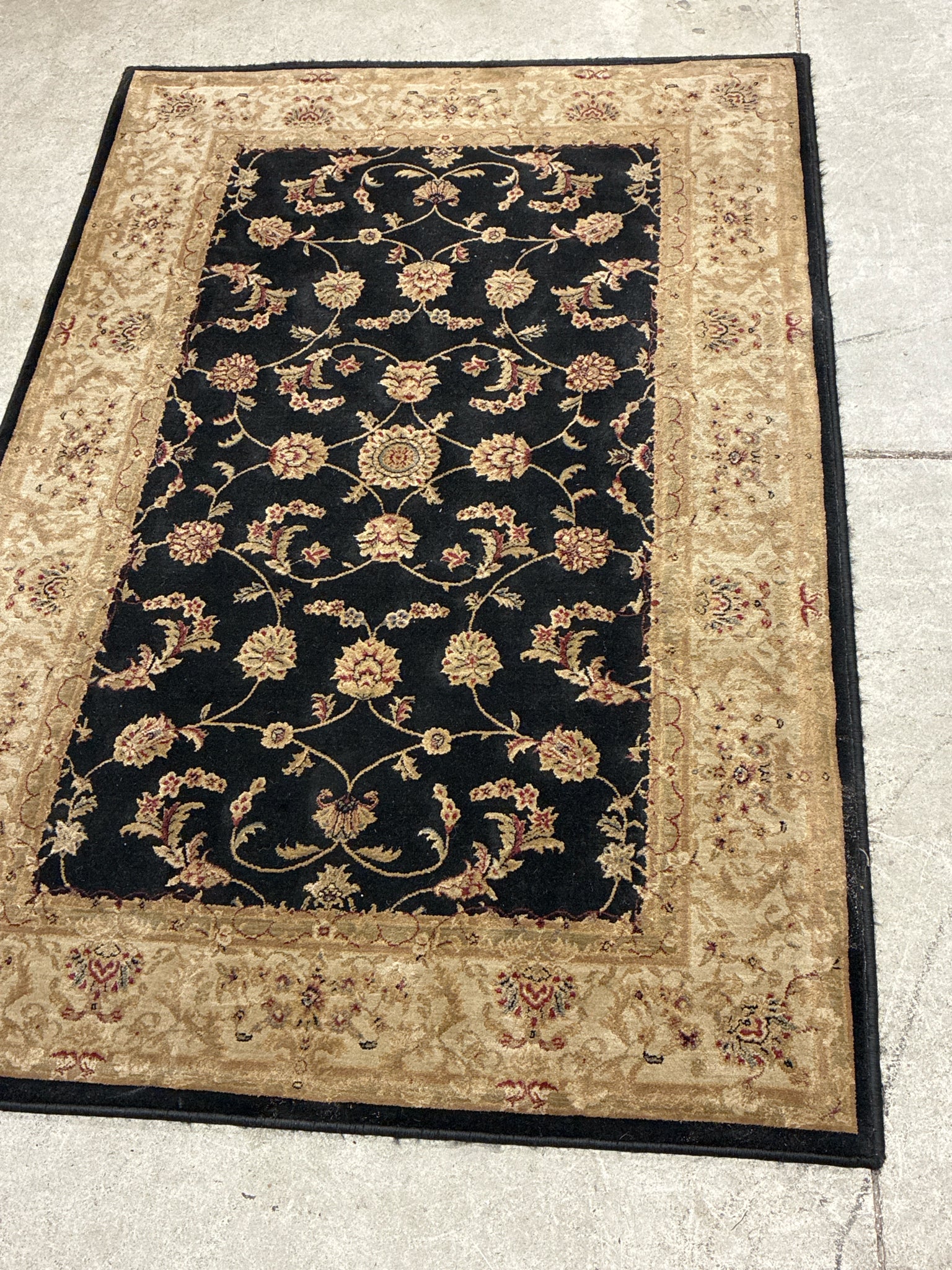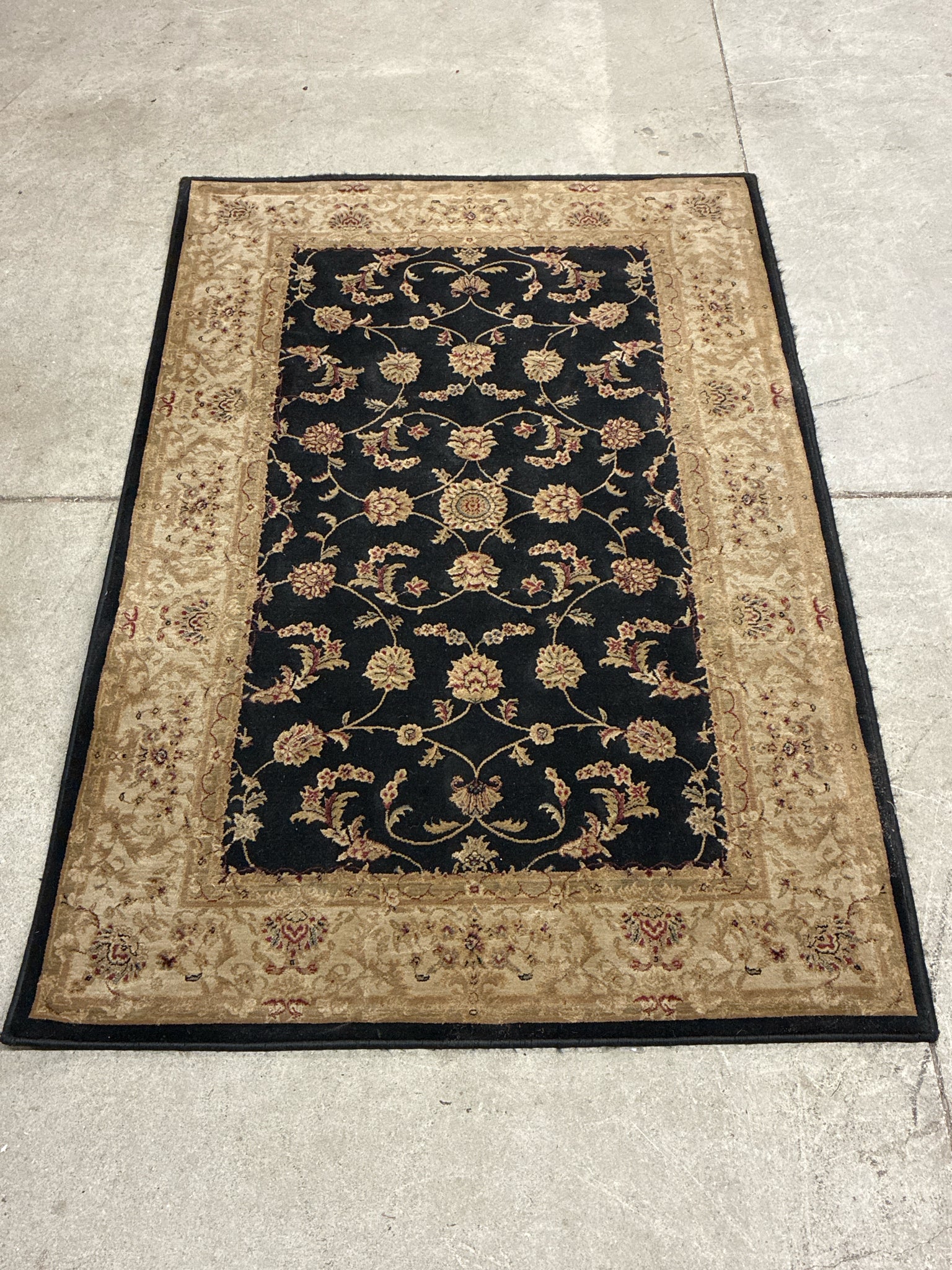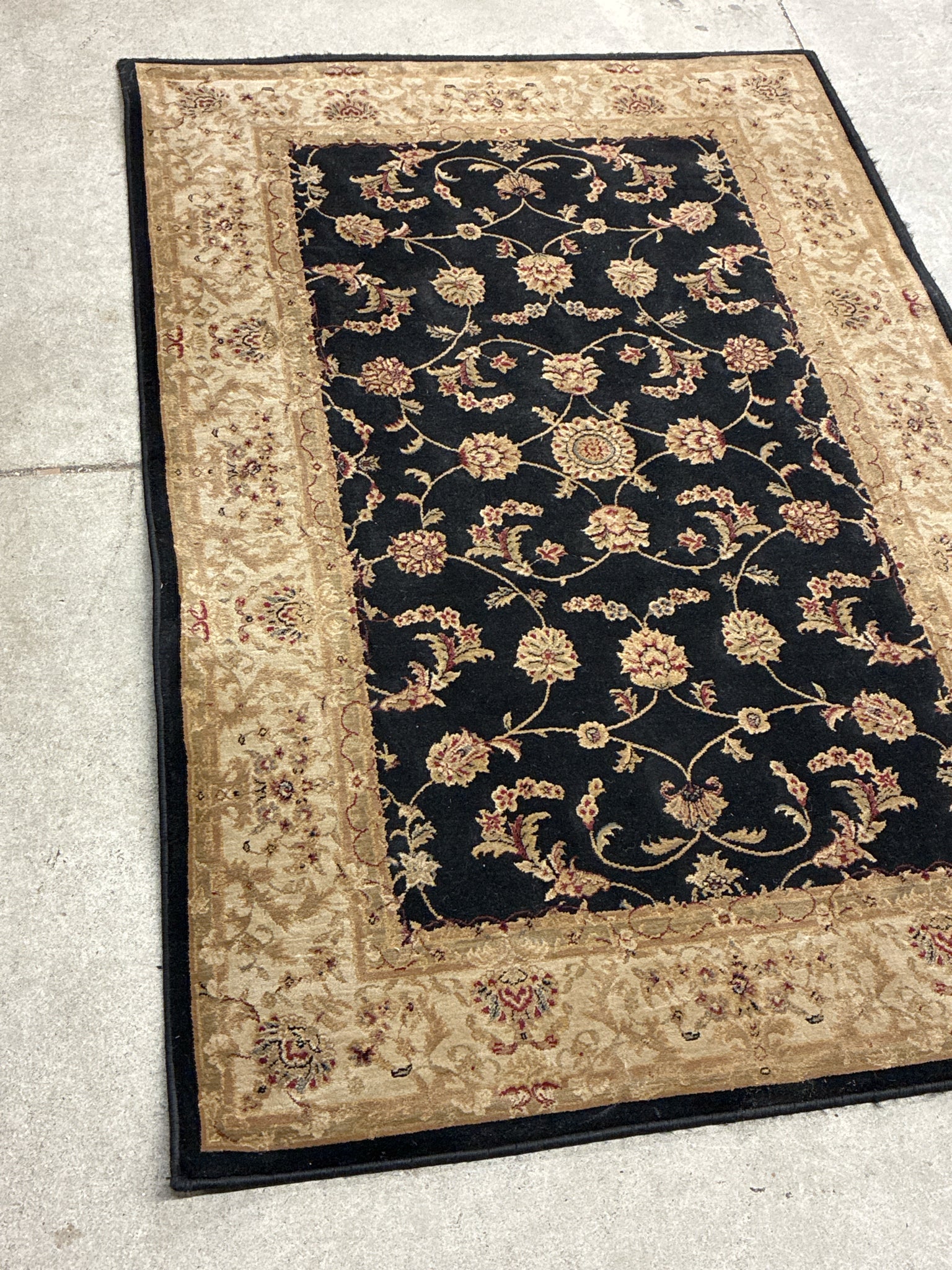 Dalyn Black and Tan Floral Area Rug. Dimensions: 5'6" X 3'8"
