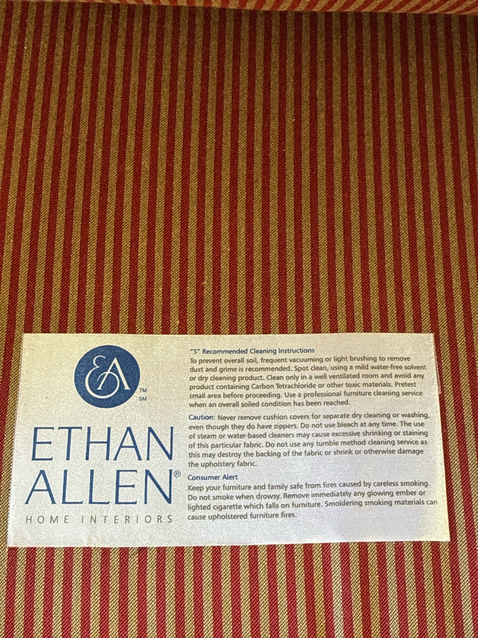 Ethan Allen Red Striped Rolled Back Arm Chair