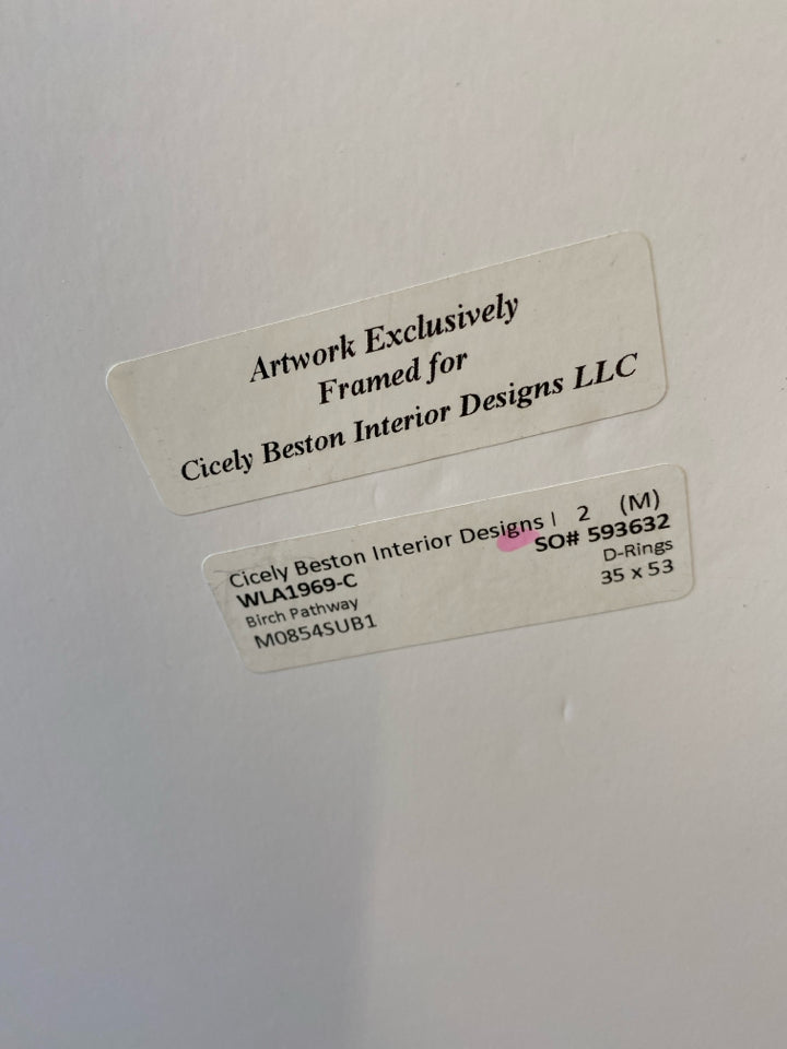Framed Art Birch Tree Path. Dimensions: 36.5" Long x 54.5" High