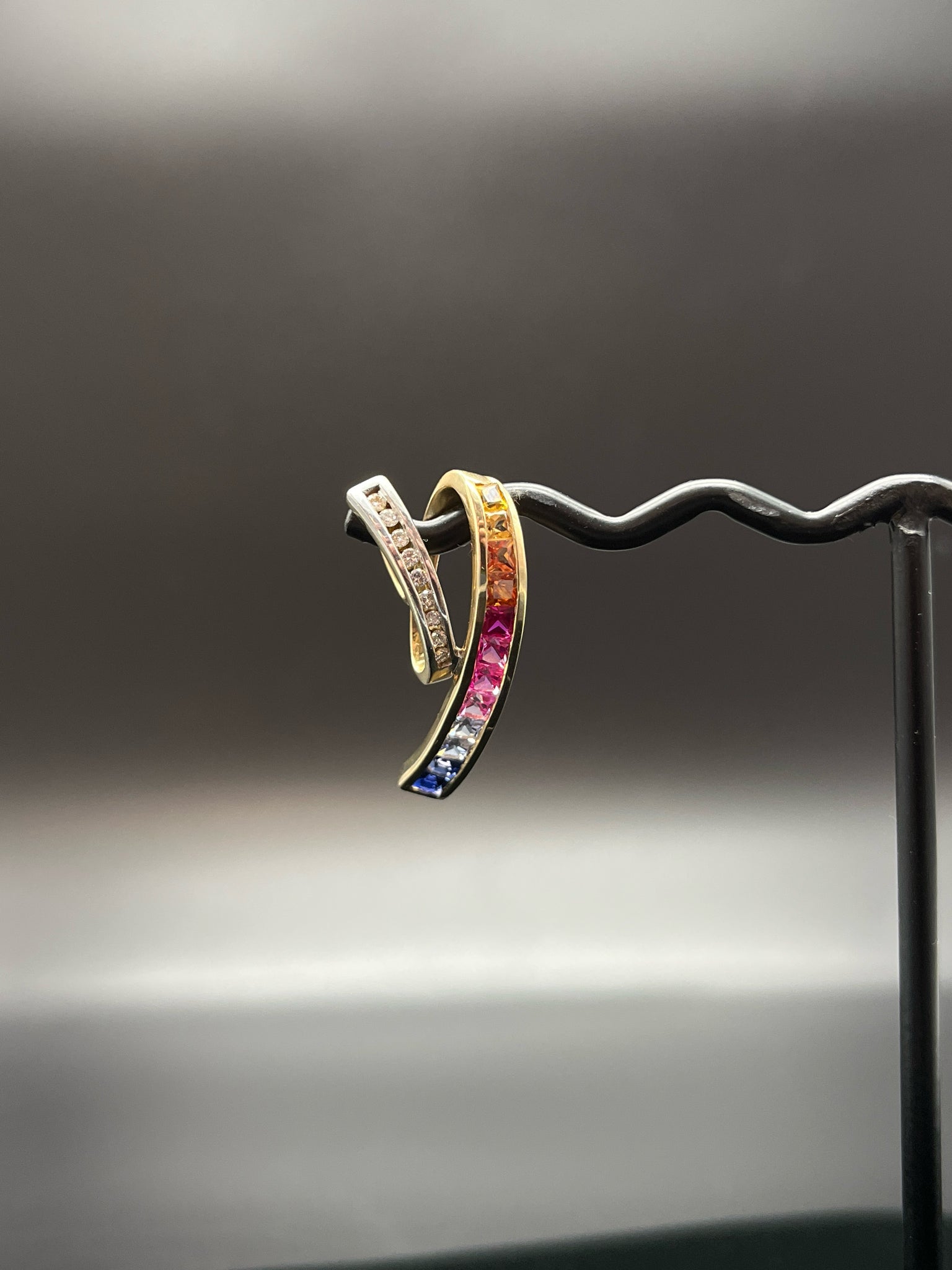 10K yellow gold channel set rainbow colored stones with diamonds looped slider pendant, marked 10K LGL