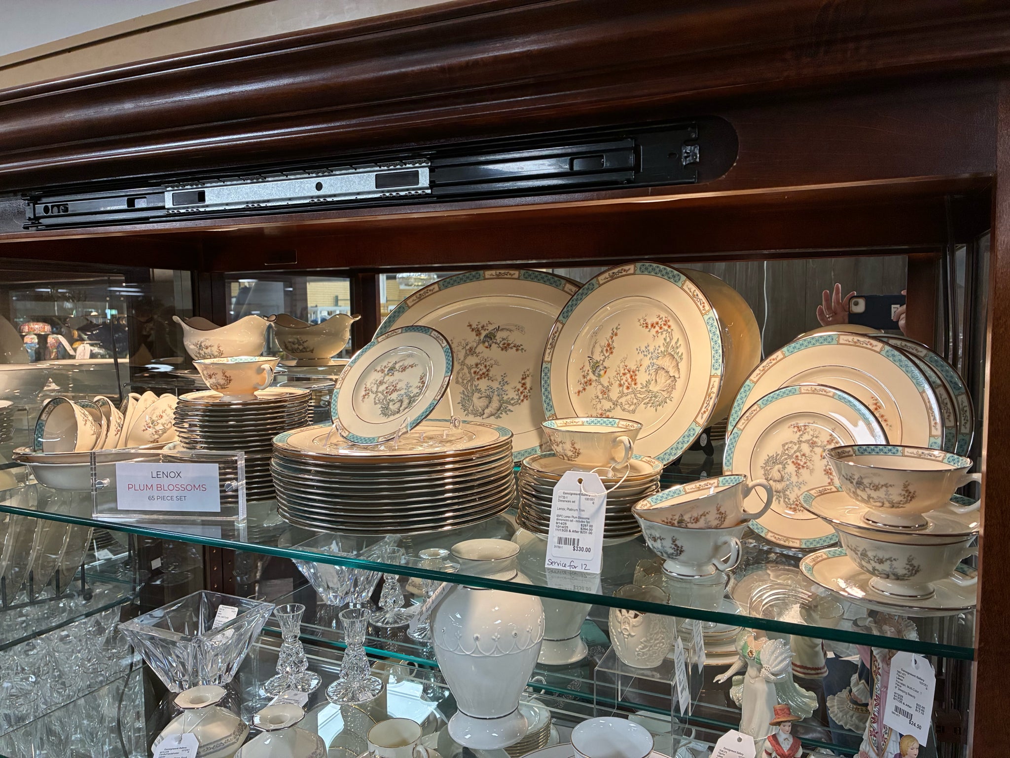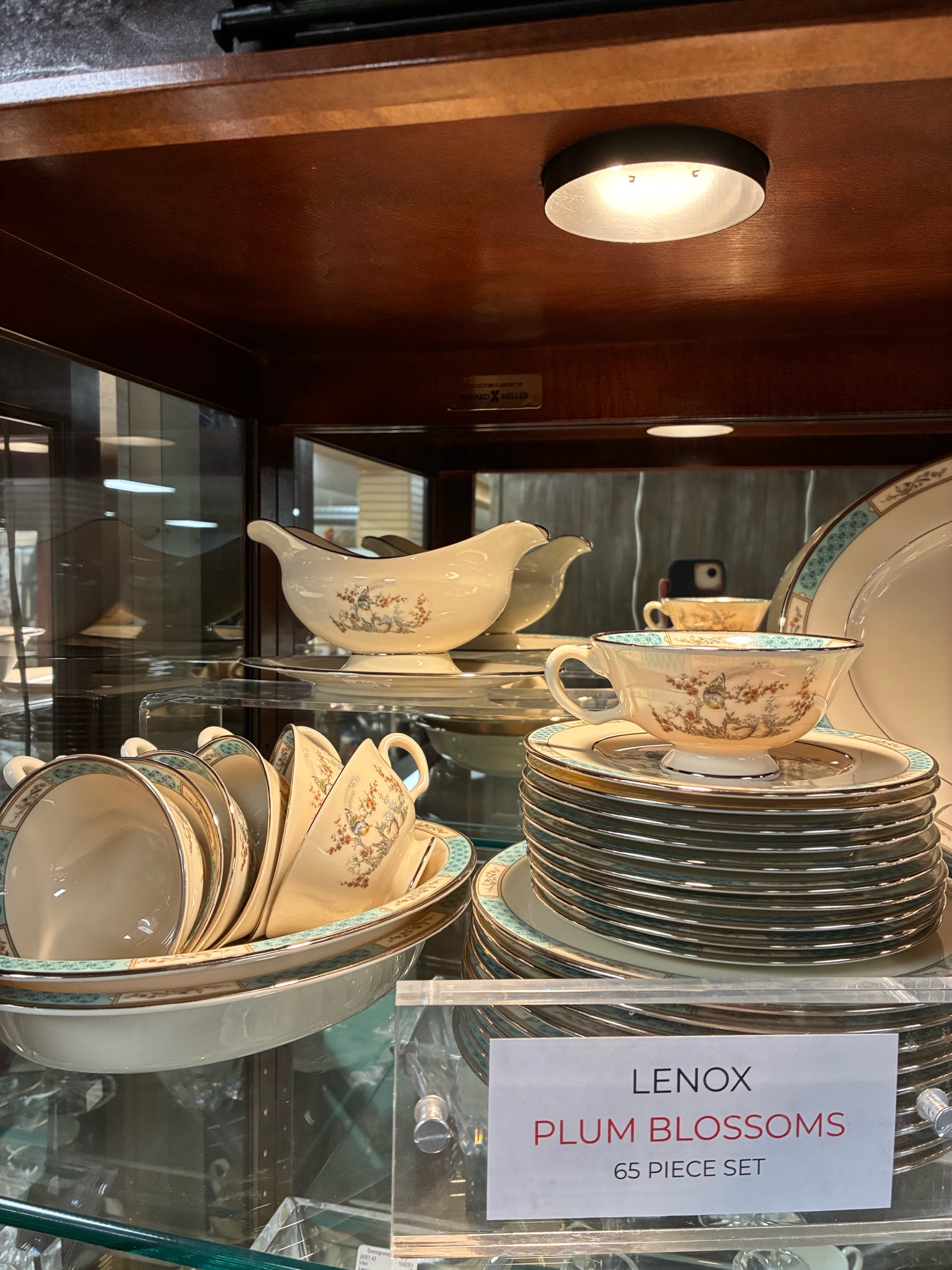 65PC Lenox Plum Blossoms dinnerware set - includes 5pc place settings for 12 (+ extra dinner plate) and 4 serving pieces