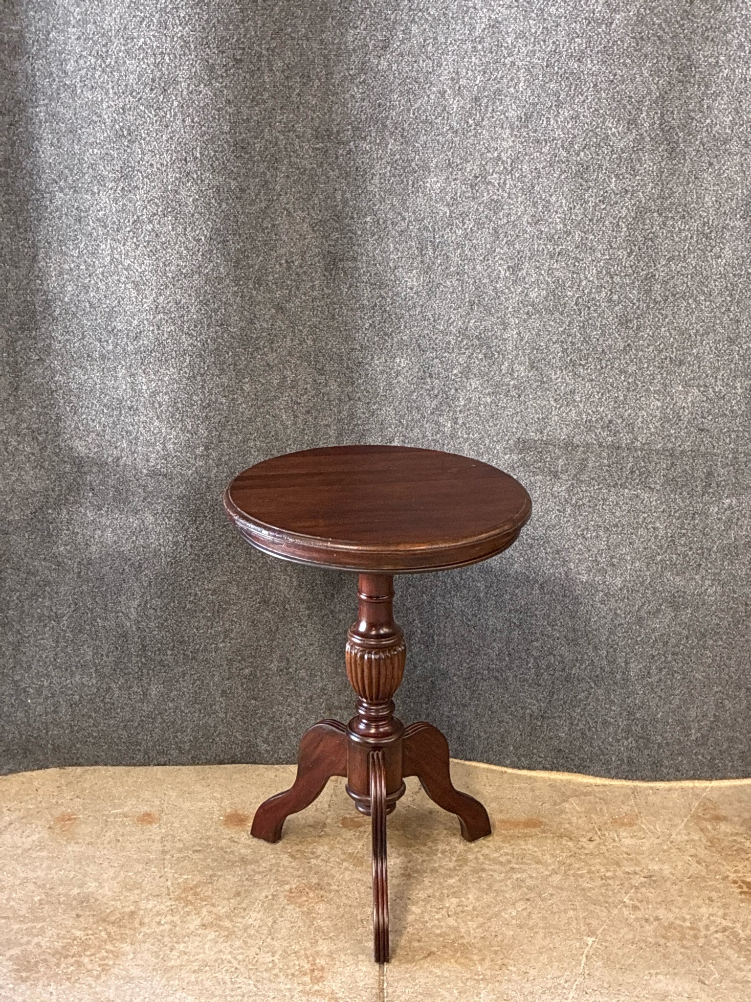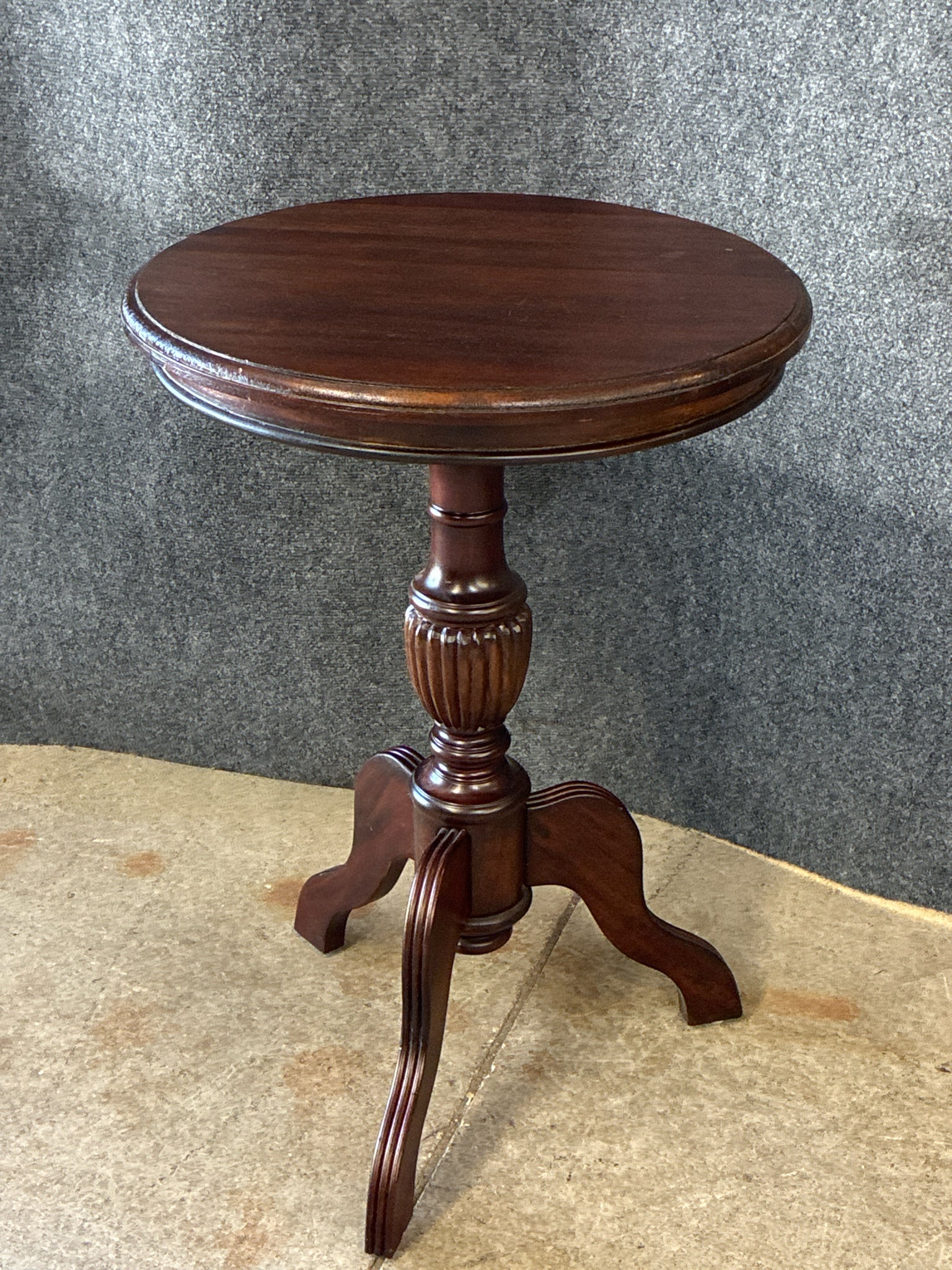 Mahogany Fluted Pedestal Accent Table. Dimensions: 20"D 28"H
