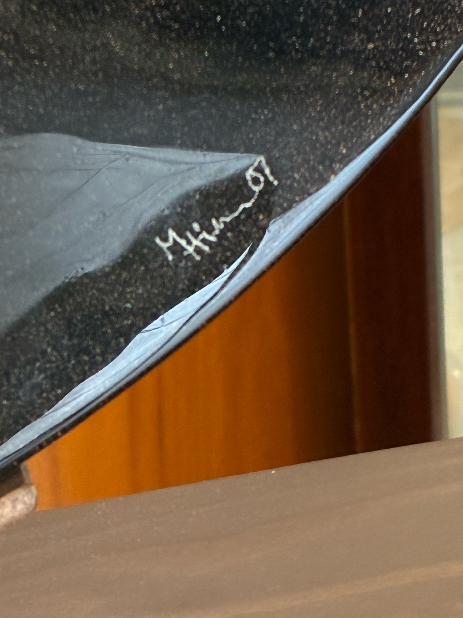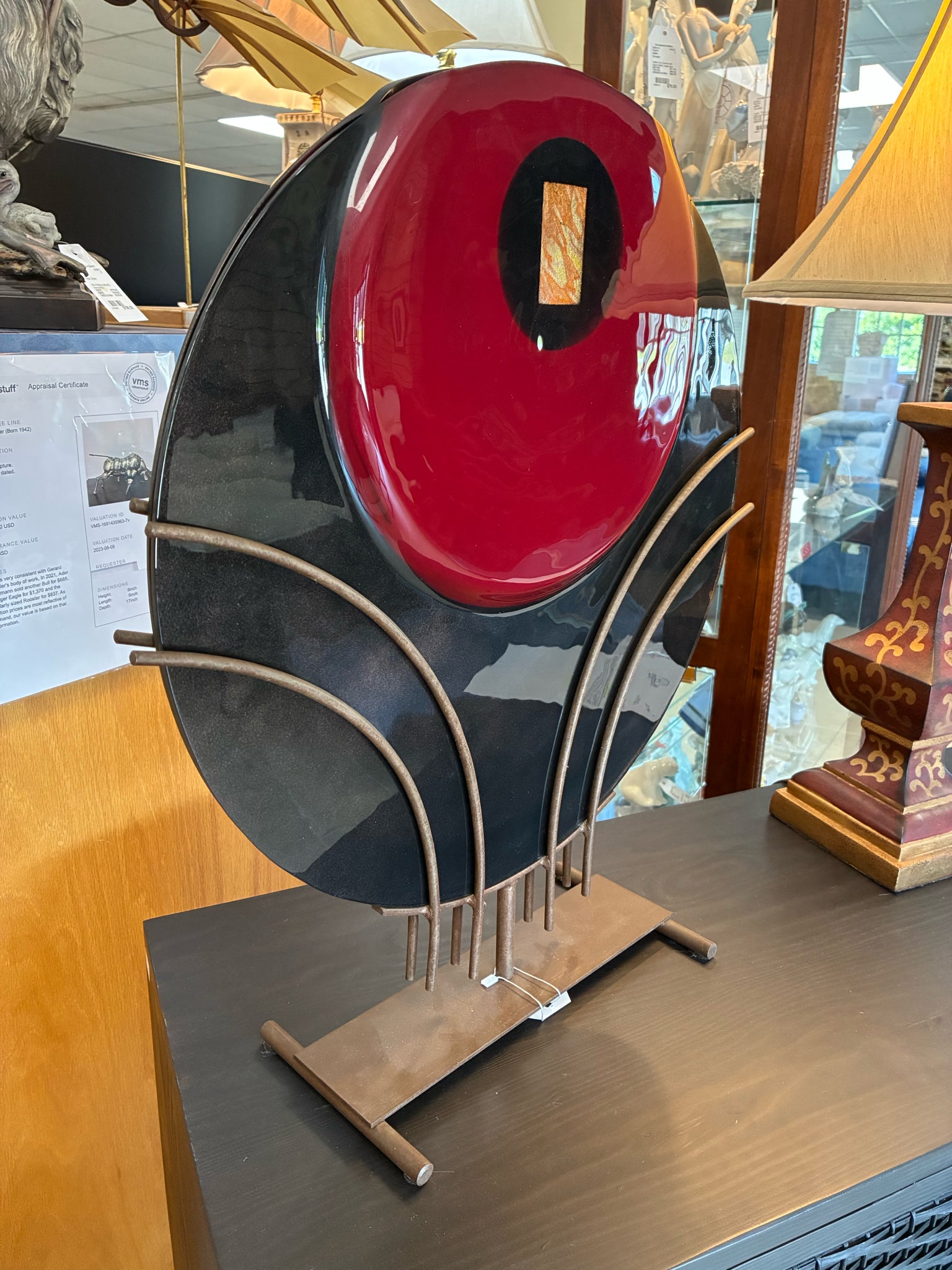 23x20" Mark Hines art glass vase, signed w/ metal stand