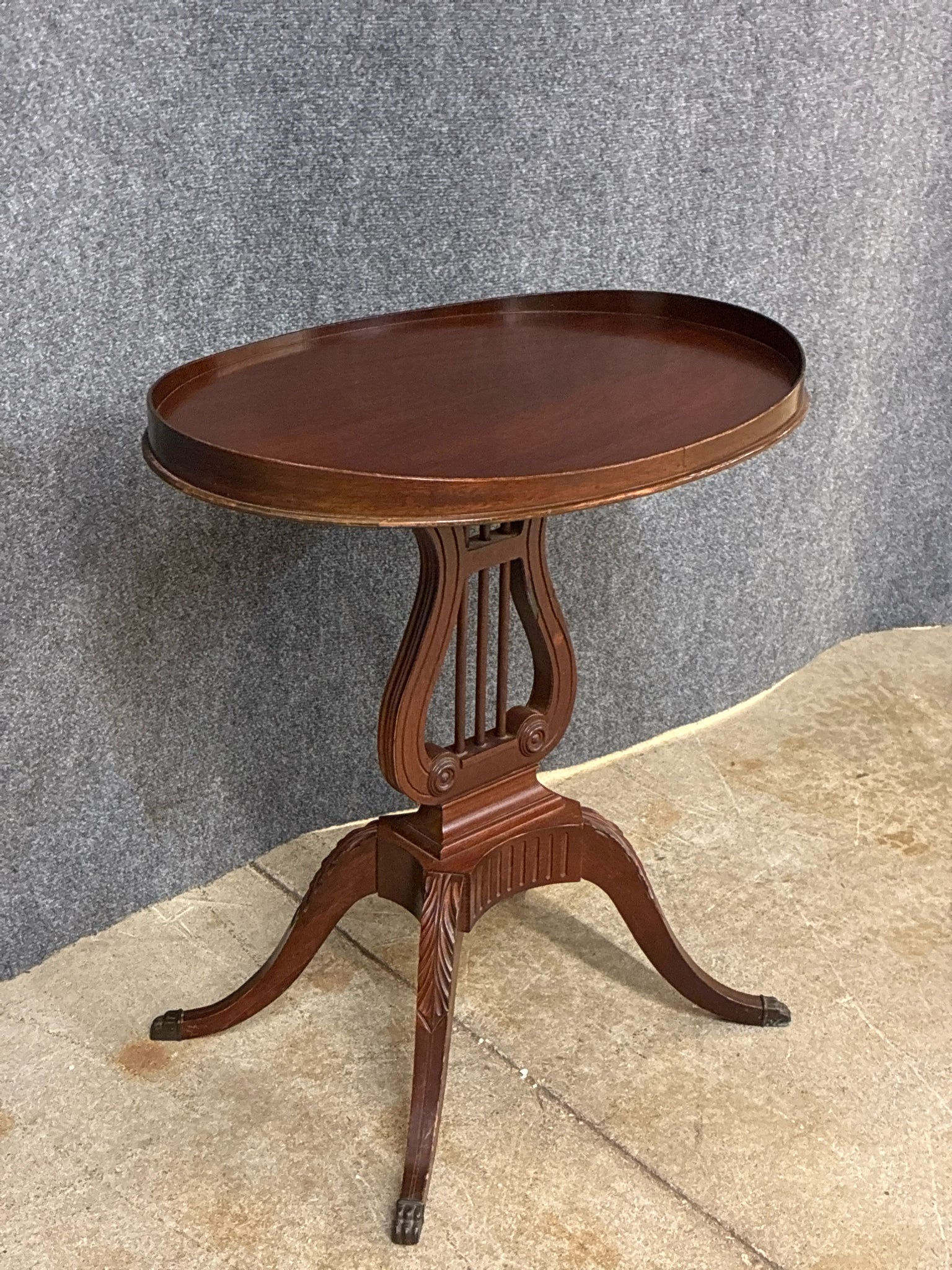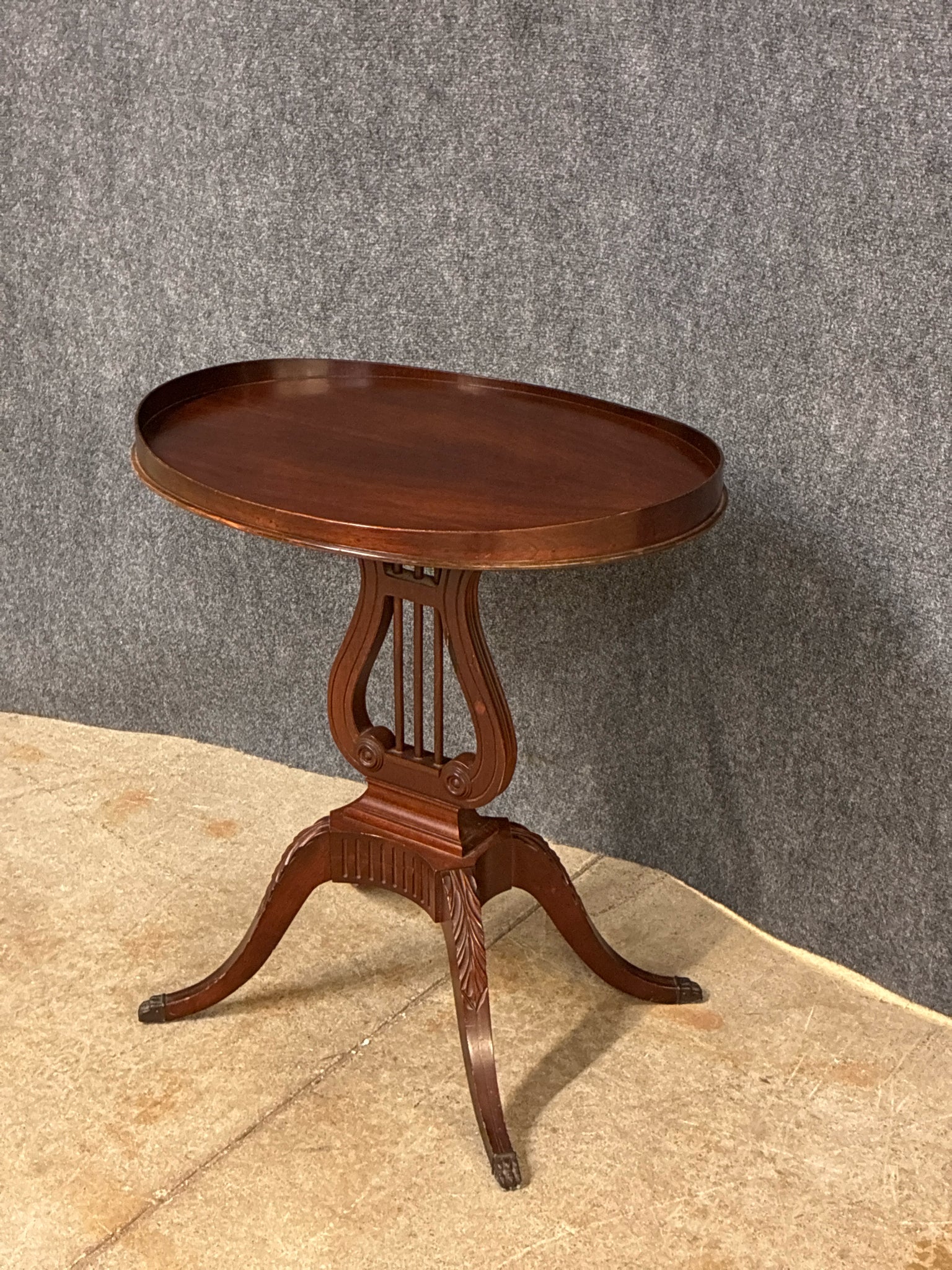 Mersman Lyre-Base Mahogany Accent Table. Dimensions: 24"W 18"D 26"H