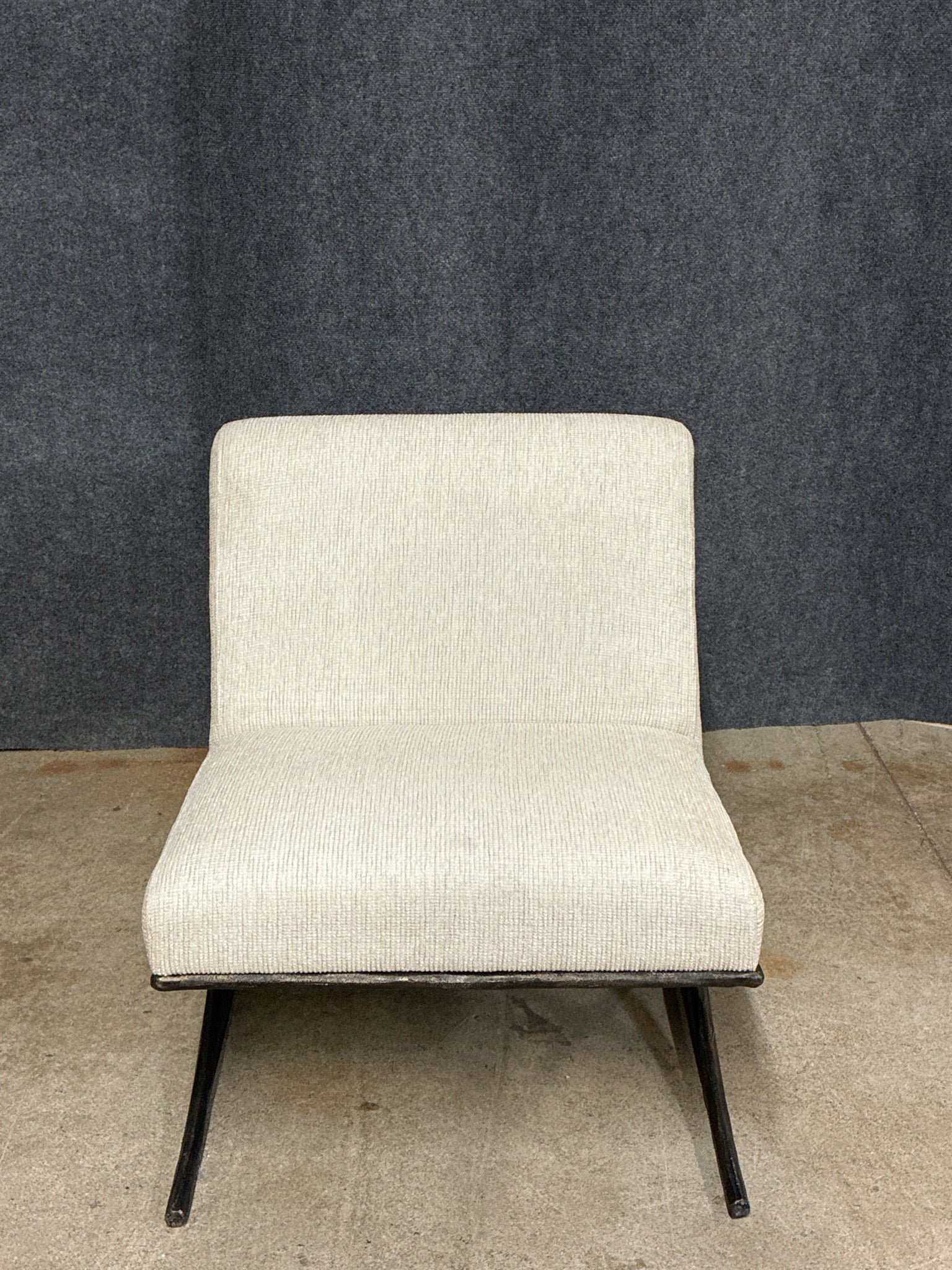Modern Upholstered Lounge Chair with Sculptural Metal Base by Dharma Lifestyles. Dimensions: 28"W 32"D 30"H