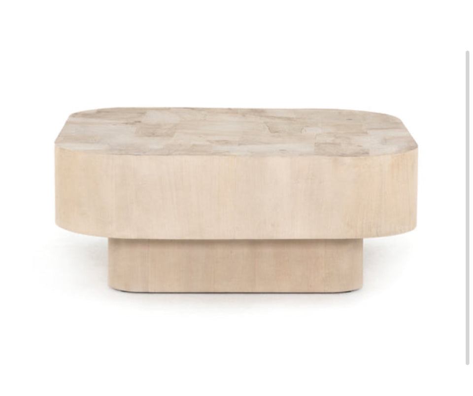 *NEW* Four Hands Blanco Coffee Table in Bleached Burl, 40" W x 40" D x 16" H