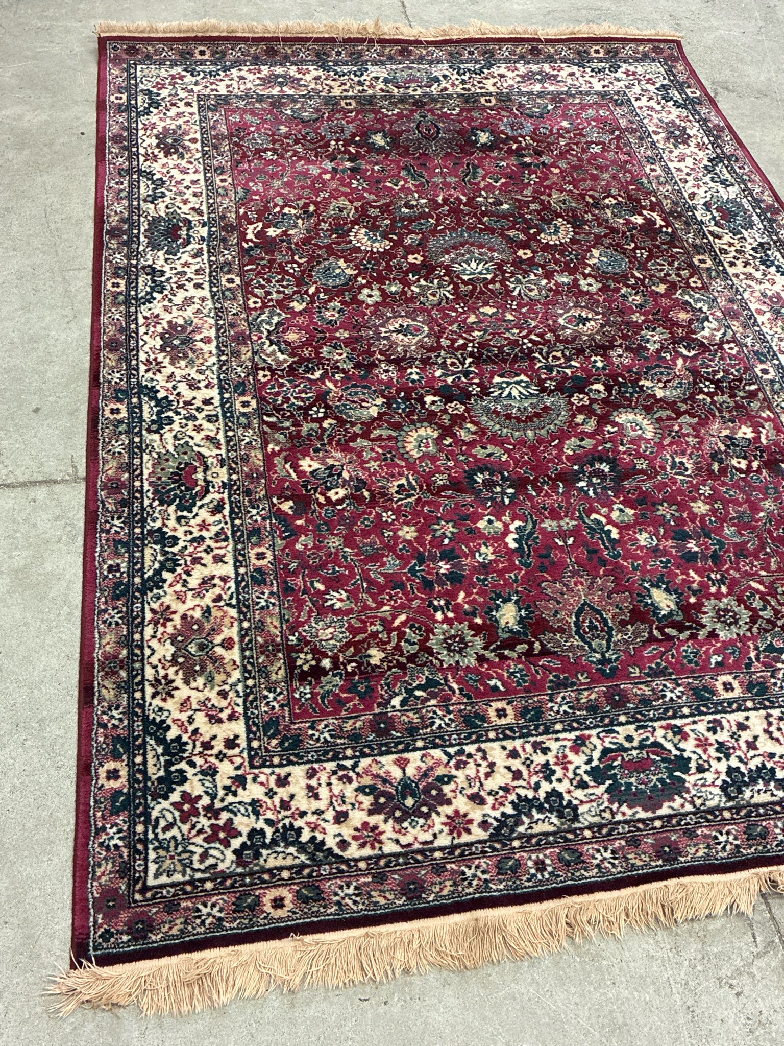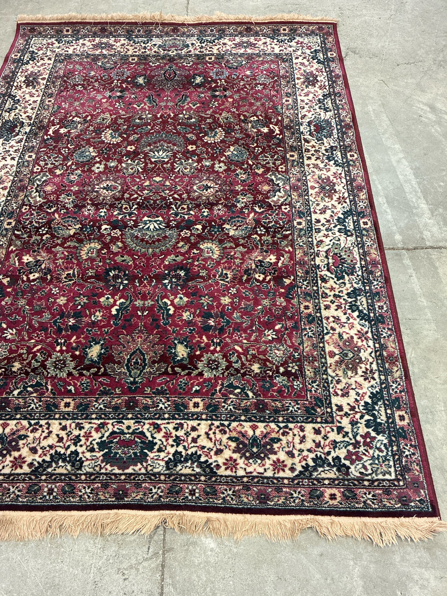 Persian-Style Wool Rug in Red and Ivory. Dimensions: 5'5" X 8'