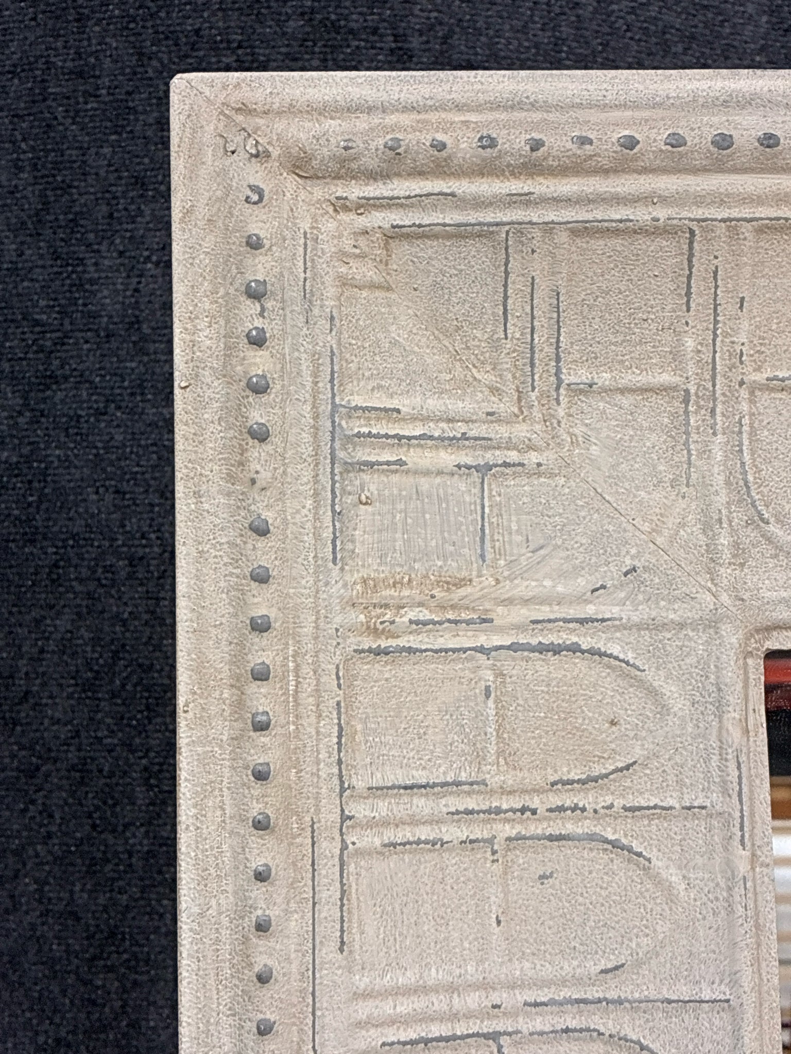 Pier 1 Embossed Metal Mirror with Whitewashed Finish. Dimensions: 34" X 48"