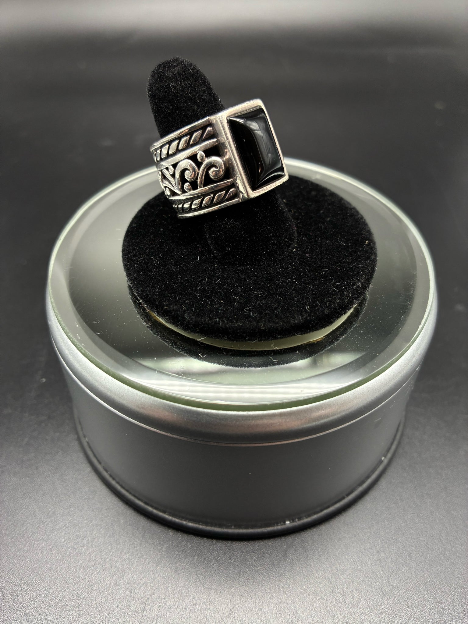 Silpada sterling silver & onyx wide band ring, size 6.5